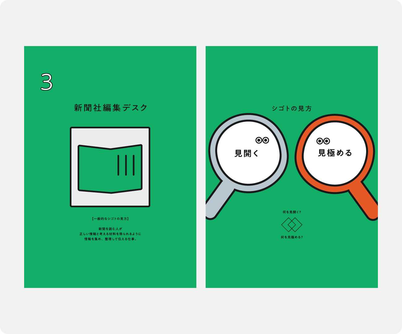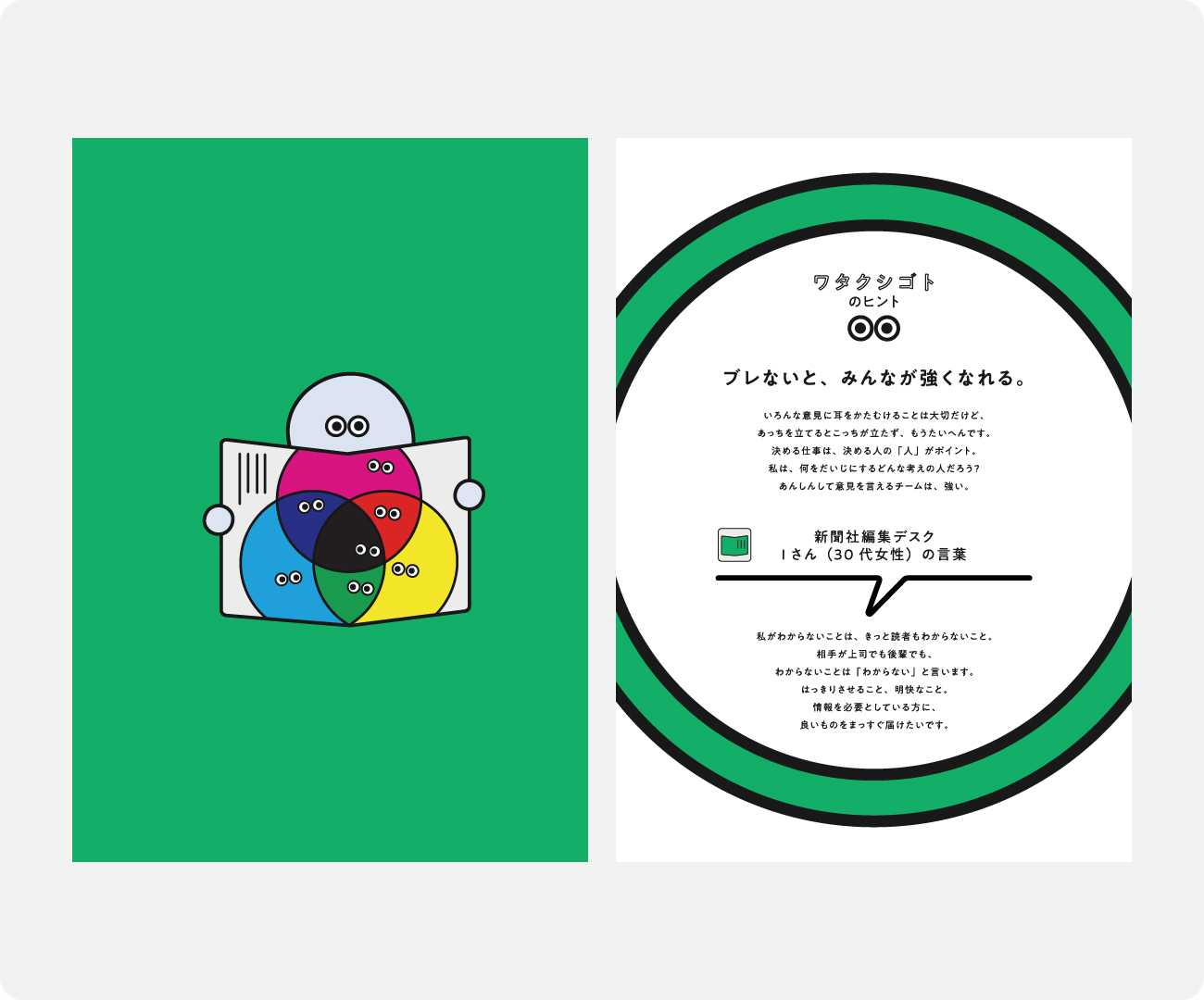 もしかすると、仕事の見方を変えることで、この「コミュニケーション・エラー」を解消できるのではないか。そして、デザインで培った視点や思考が、その助けになるかもしれない。そんな仮説をもとに、制作を進めました。