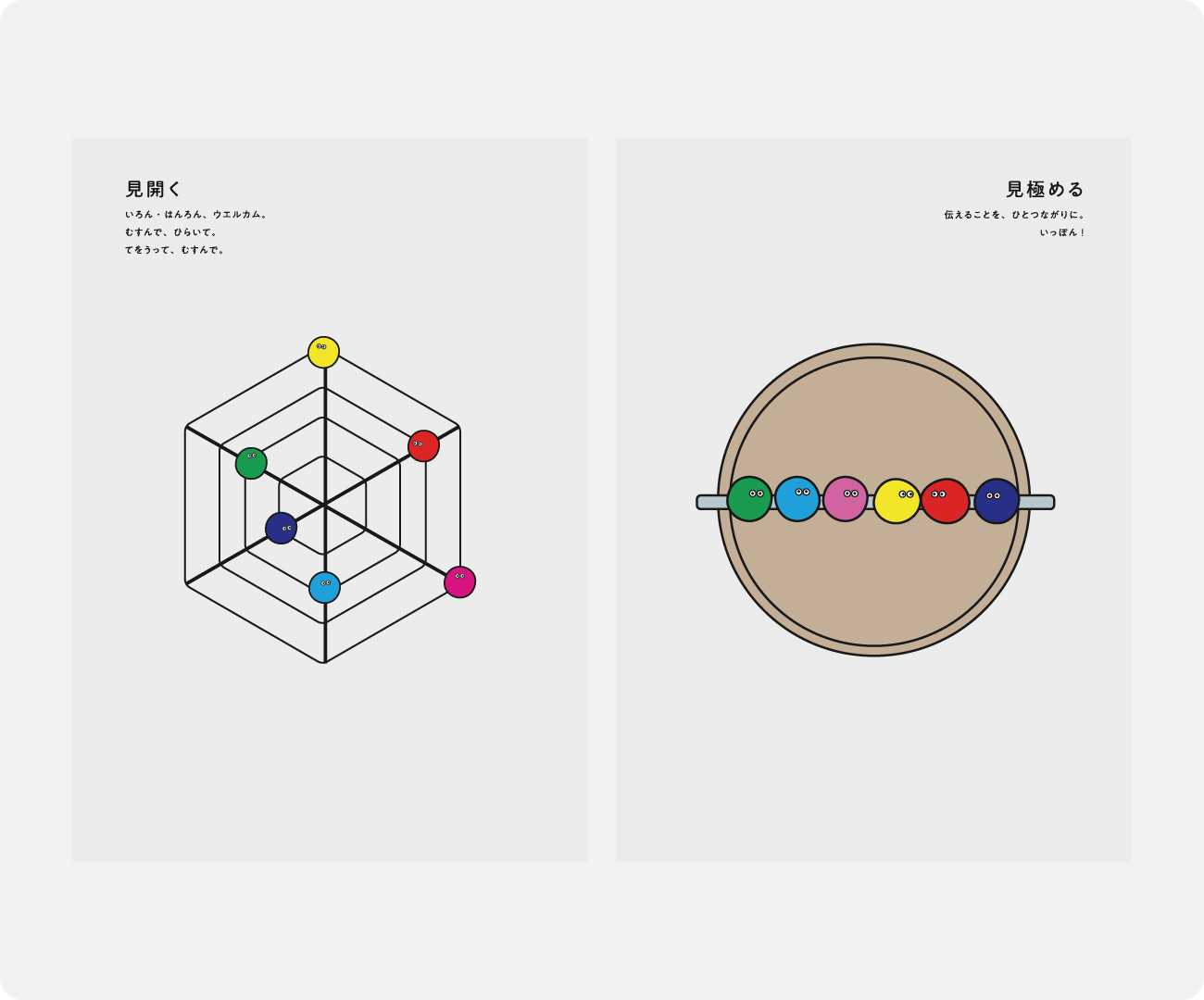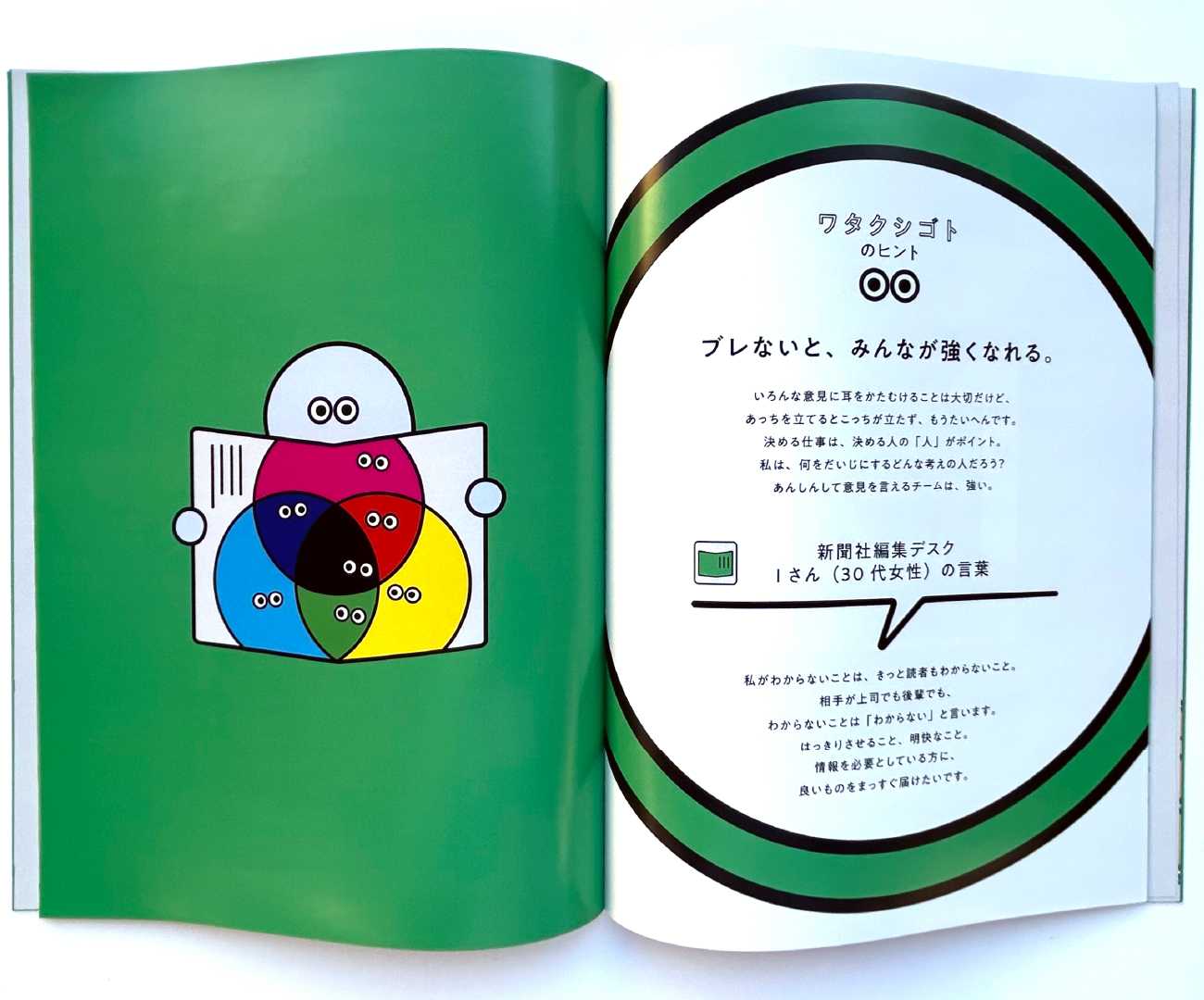 目指したのは「“お仕事モード”から解放するビジュアルブック」。大胆にデフォルメした形や線・鮮やかな色彩で構成し、理屈よりも直感で楽しめるデザインにしました。