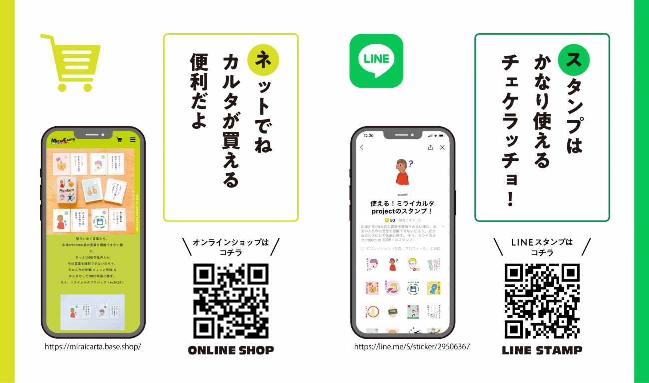 ミライカルタはWEBショップで販売中。LINEスタンプも制作
