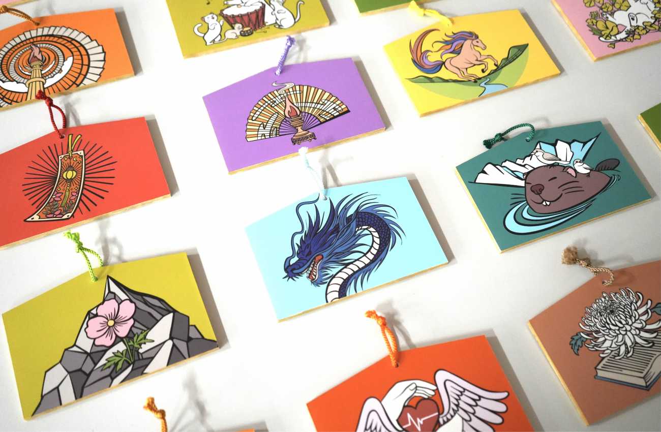 絵馬型パネル W150mm×H10 紐2cm 60点