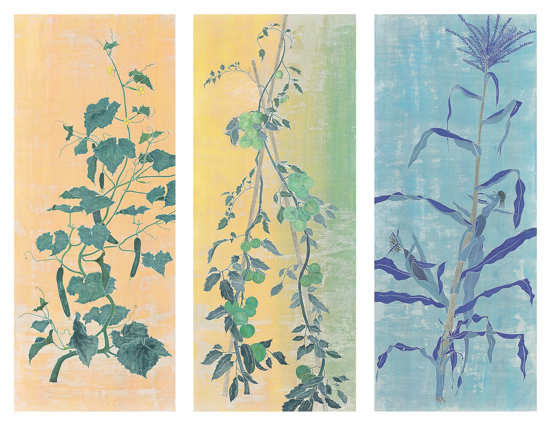 紙本/岩絵具、水干絵具、墨、膠、金箔、銀箔、青箔