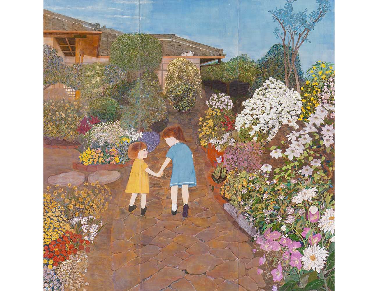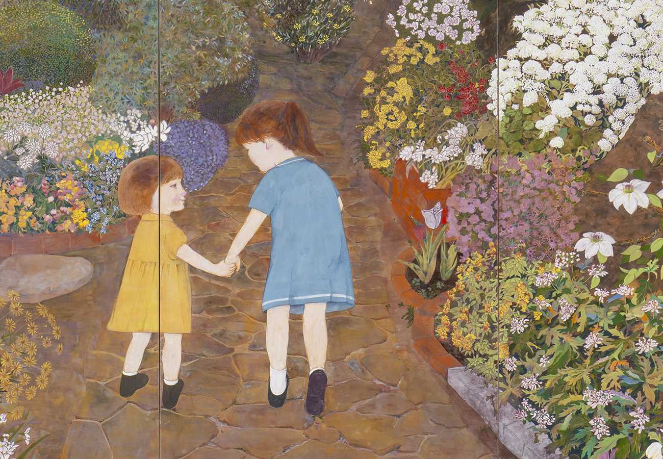 なので、お花でいっぱいの庭と幼かった娘たちの絵を主人に贈ります。