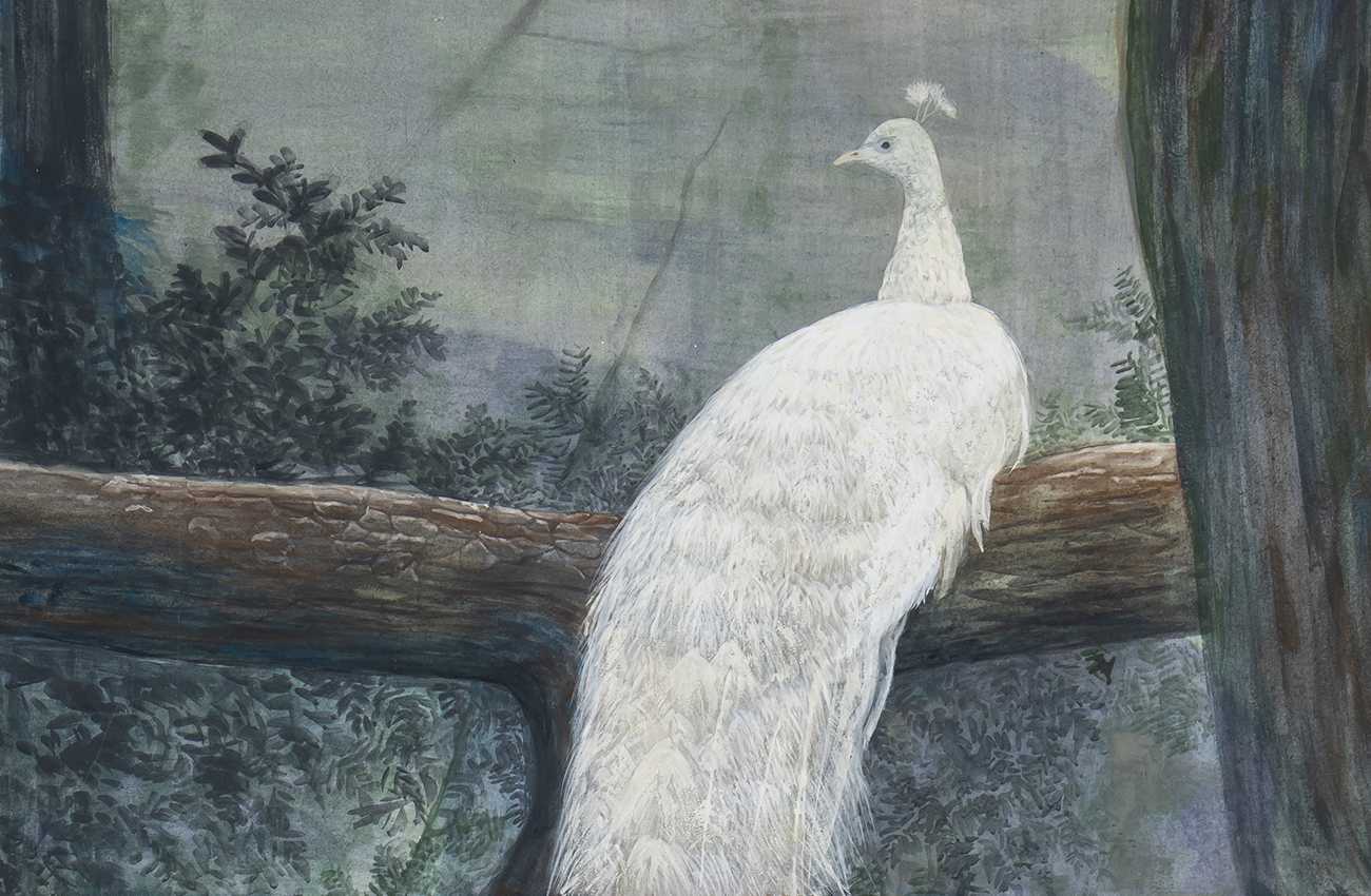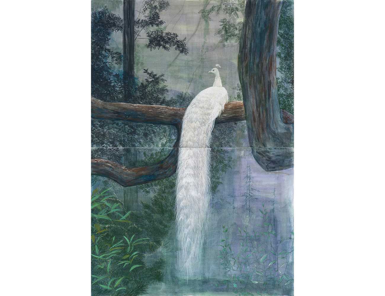 日本画を学び始めて胡粉の白の美しさに感動しました。卒業制作では胡粉の美しさを表現したく、白孔雀を主題に選びました。