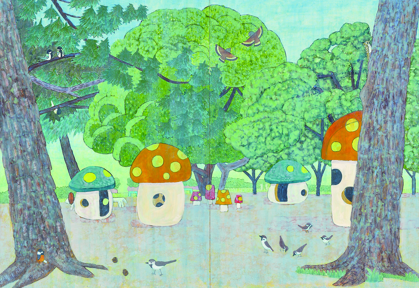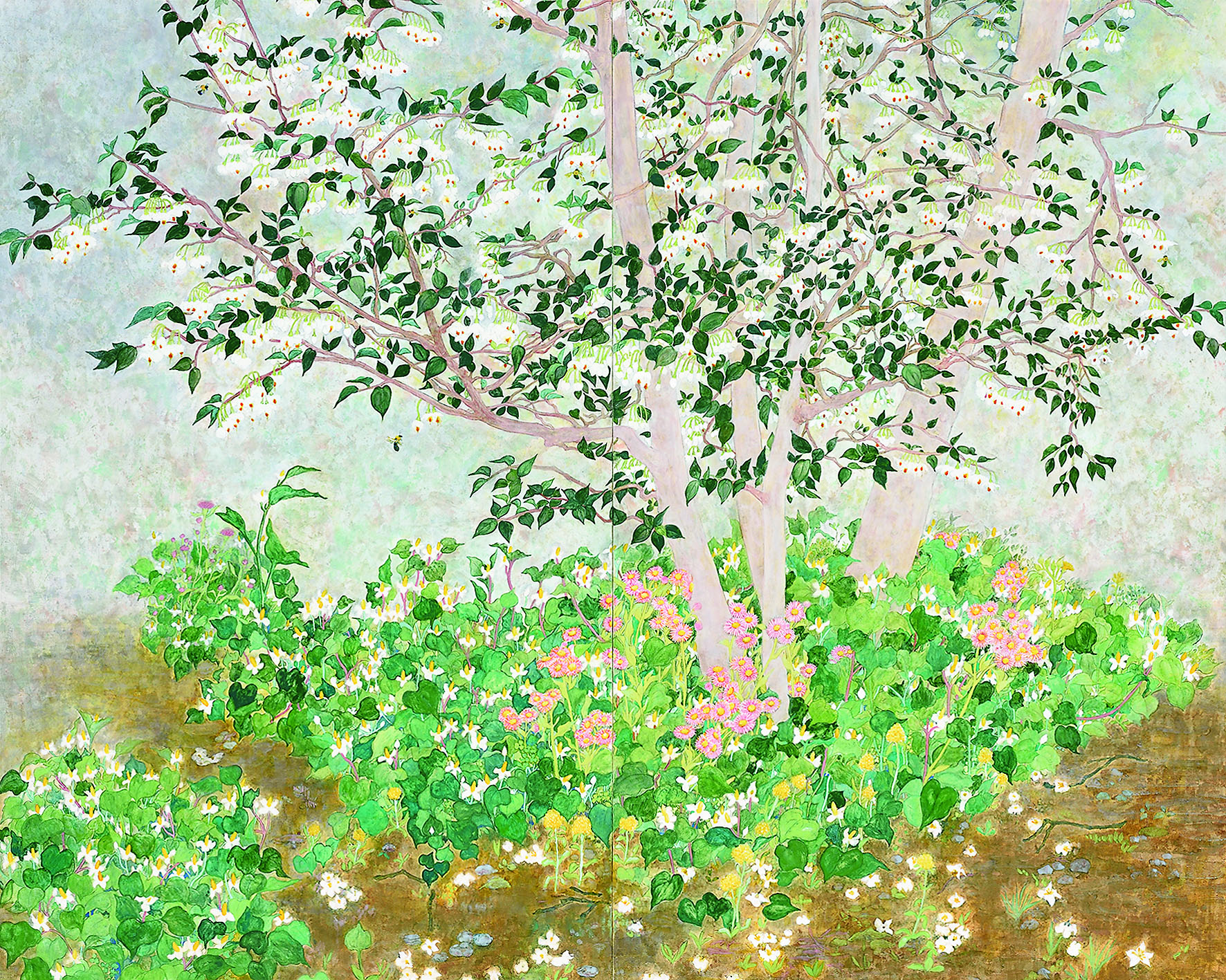紙本/岩絵具、水干絵具、墨、膠、金箔、金泥