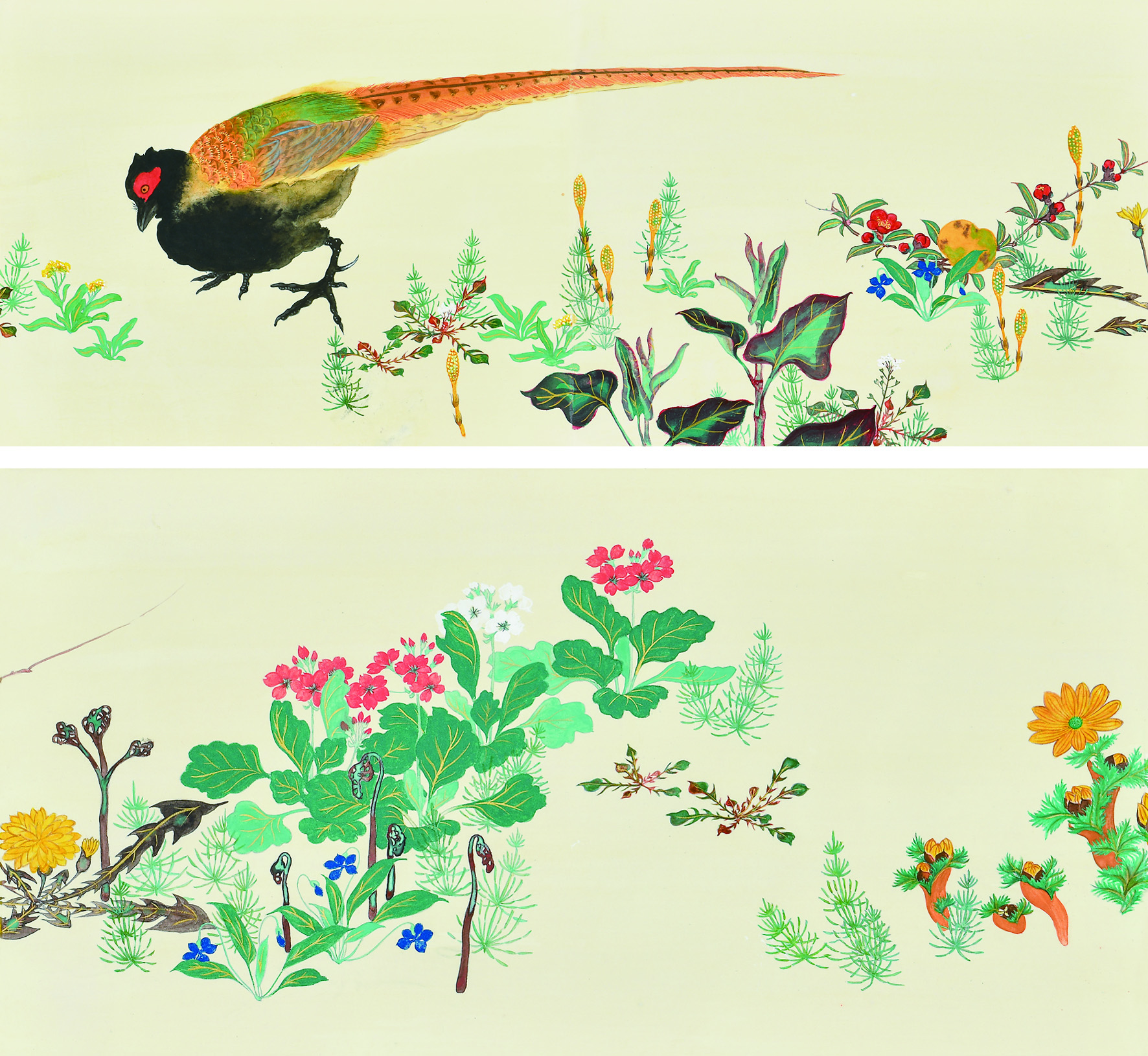 紙本/岩絵具, 水干絵具, 墨, 膠