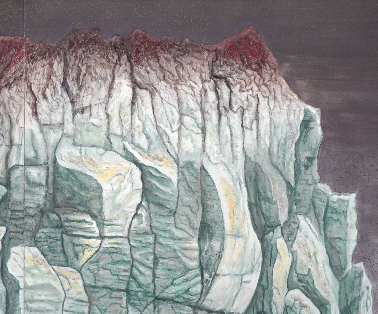 約4000年前の噴火により大量の溶岩が相模灘に流れ込み、東伊豆に溶岩流の表面構造や柱状節理により創られた岸壁が反り立っています。青い海に、その造形の美しさと険しさと凛々しさを持つ岸壁を前にした時、心に衝撃が走りました。この力強い岩の壁に対峙し、内面に感じ得るものを表現したいと思い挑みました。