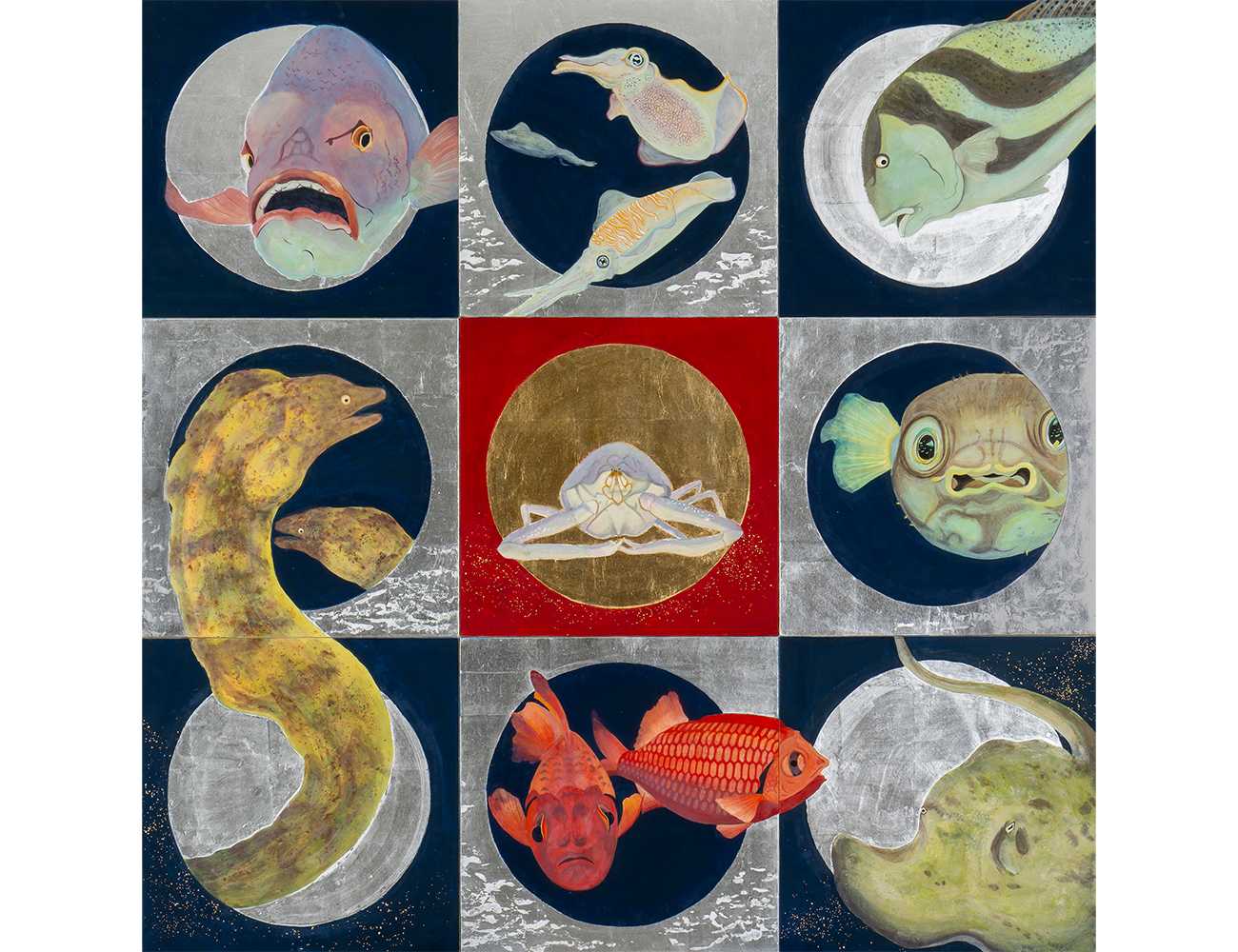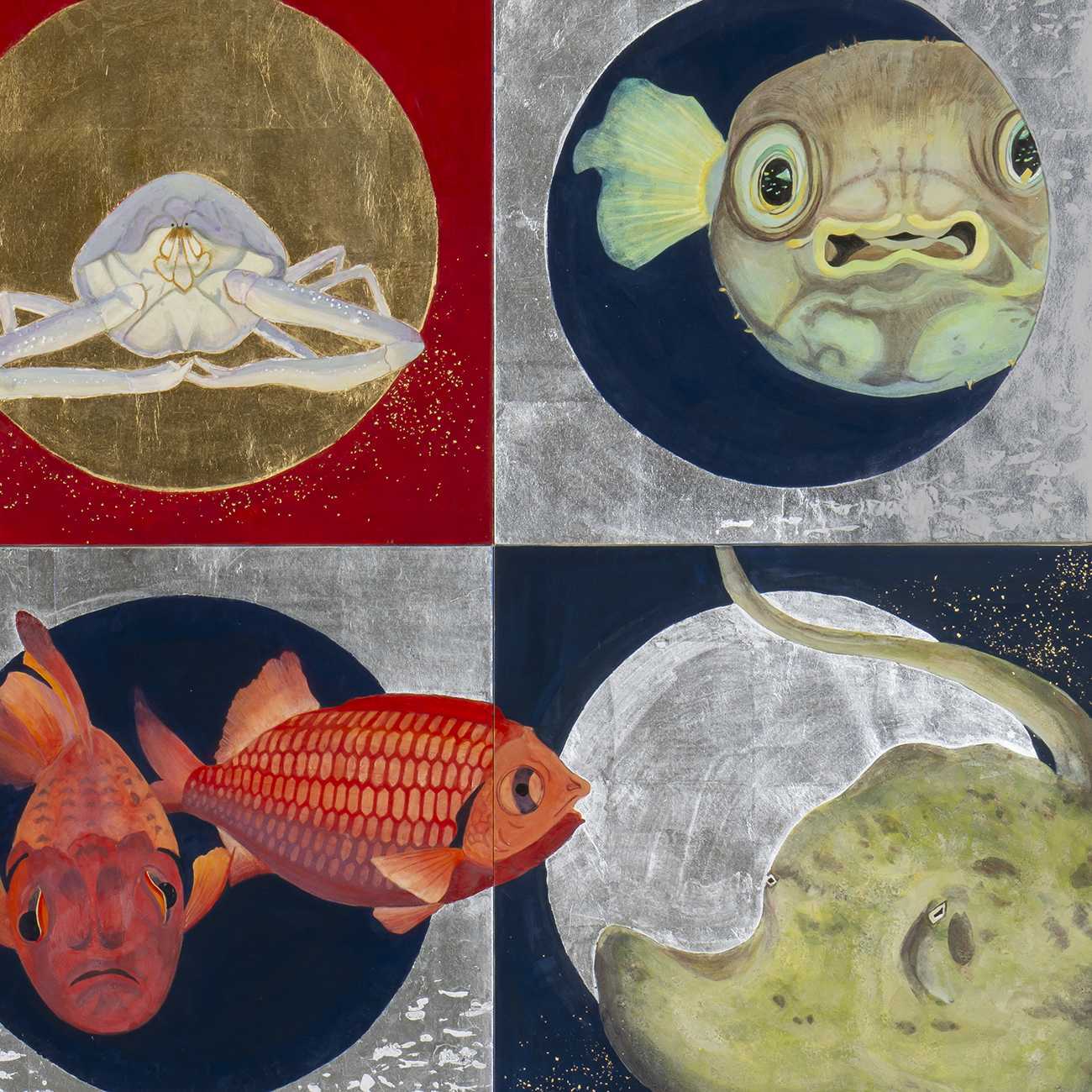 紙本/岩絵具、水干絵具、墨、膠、金箔、銀箔、金泥