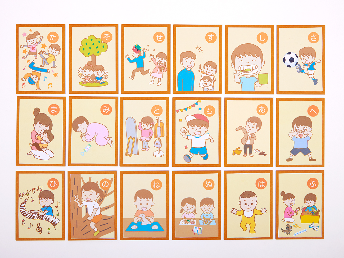 家族で気軽に遊びながら親がこどもへの声のかけ方を学べるかるたを作りました。