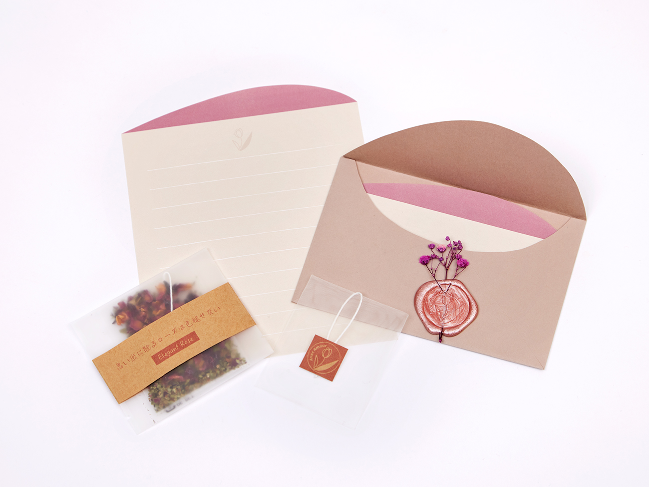 以前、体の管理にハーブティーを用いるドイツの文化を現地旅行の際に知り、温かいハーブティーは気持ちを落ち着かせる効果があるという知識を得ていた。実際自分自身も仕事や作業のお供として飲む機会が多く、これは手紙を書く手助けとしても最適ではないかと考えた。