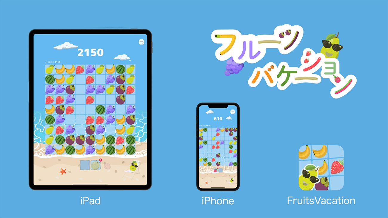 少しでもこのような女性たちのストレスを解消できればと思い、フルーツバケーションというスマートフォンゲームを作成しました。
