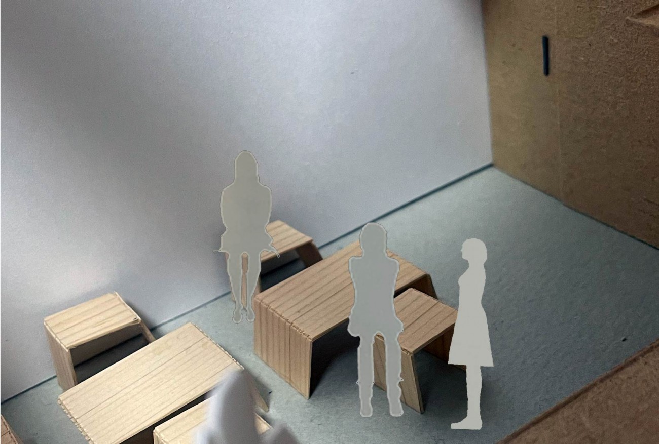 1F 小上がりのスペース。階段中間に床を設けることで上がりやすいだけはでなく使えるスペースを作った。ちょっとした打ち合わせに使えたり、高低差があることで間仕切りがなくとも周りとの一定の距離もキープできる。イベントなどでは子ども達の発表の舞台にも活用できる。小上がりは高さ600mmあり床下は収納スペースにした。