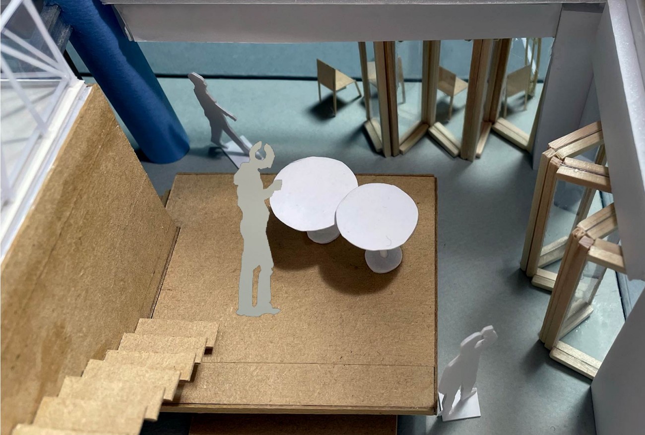 1F カフェスペース。ひとりゆっくり本を読んだり、近くの人と何気ない会話を楽しんだり、ちょっとしたみんなの気軽な居場所になるといい。
