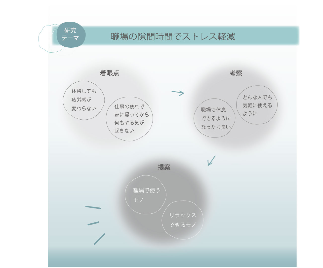 日々看護師として働いている中で、休憩時間があるにも関わらず、疲労感が軽減しないことに着目しました。