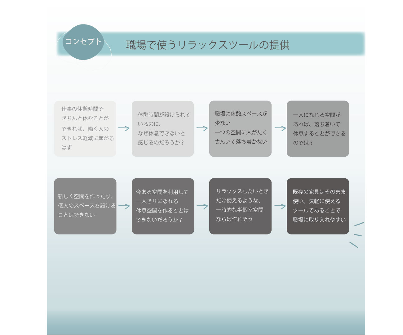 そこで、職場の休憩時間でストレスが軽減できれば、日々の生活が少し楽になるのではと考えたのです。