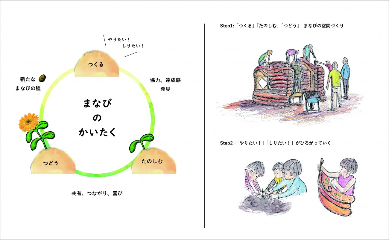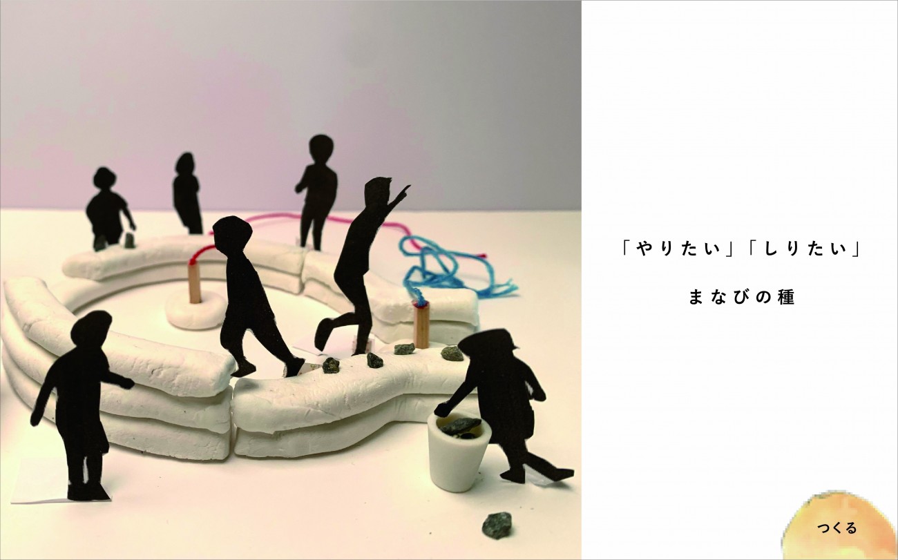 【まなびのかいたく】どこに、どんな材料で、どうやってつくる?机の下、階段の下、近所の雑木林、段ボールの大きな箱。子どもたちは自分たちの空間をつくることが大好きです。自分たちで考え自分たちの「手」で空間をつくる力があります。子どもたちにとって「まなびのば」をつくること自体が「まなび」になると考えました。自分たちの手で空間をつくりだすことで生まれる「やりたい!」「知りたい!」という気持ち。この気持ちこそが未来の暮らしをつくる「まなびの種」だと考えます。「つくる」過程を楽しむことで「やりたい!」「しりたい!」を増やしていく。空間を「たのしみ」「つどう」ことで新たなまなびの種がひろがっていく。そんなまなびの土壌となる空間をつくります。