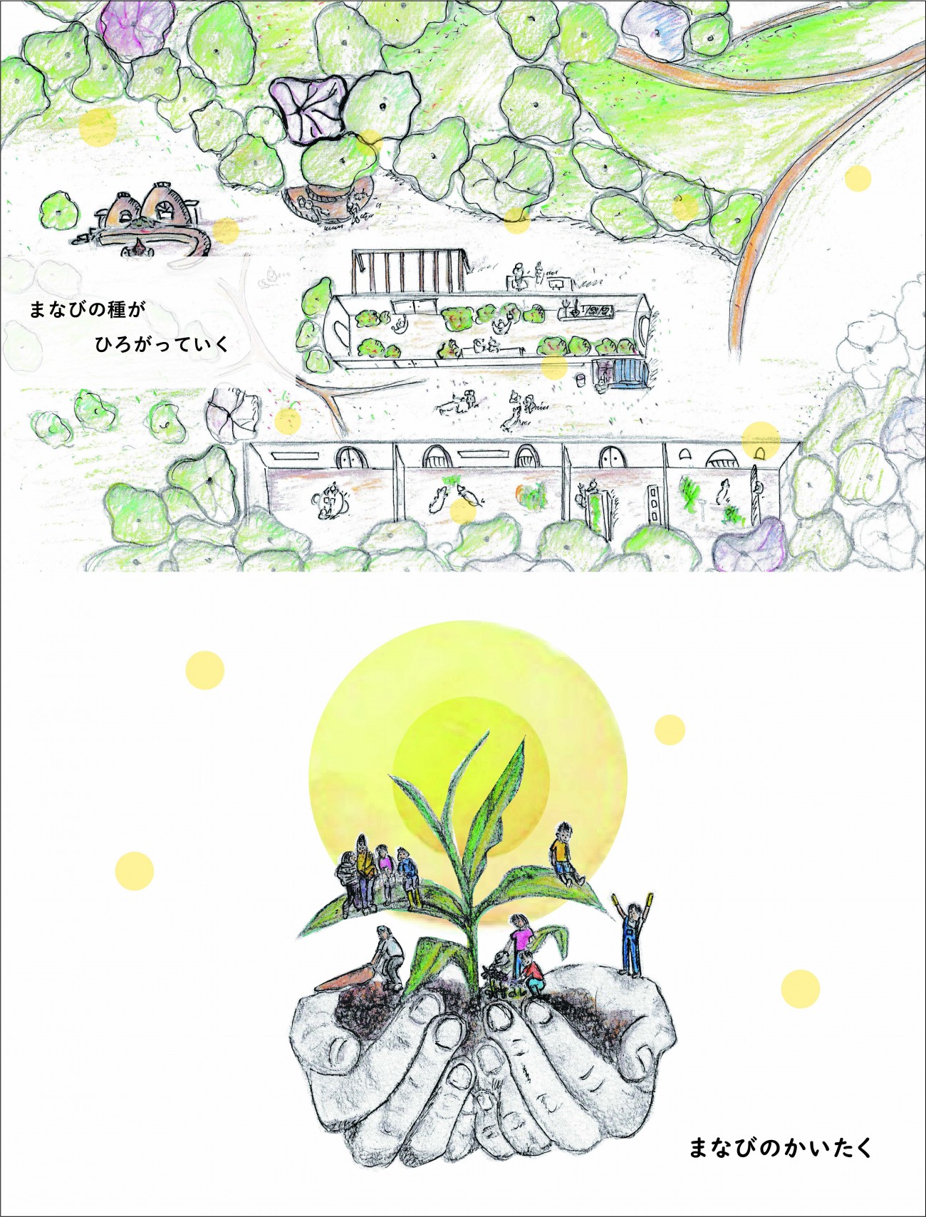 【ひろがる】みんなで一緒に空間を「つくる」ことから始まったまなびのば。「つくる」「たのしむ」「つどう」の循環を丁寧に重ねていくことで、まなびの種はひろがっていきます。今度はビニールハウスで野菜を育てたいな。みんなでつくった野菜を使って料理をつくってみよう。どうやったらもっと美味しい野菜ができるかな?動物たちの糞を堆肥にできるかな。きじ小屋をリノベーションして動物たちのおうちにしようかな。堆肥をつくるためにコンポストをつくってみよう。一人ひとりの好奇心から生まれたまなびの種を仲間と協力しあいながら実現していきます。「てしごと」を積みかさねにより暮らしに必要なものは自分たちの手でつくることができるという自信が生まれます。暮らしのなかで「てしごと」を「たのしむ」ことが未来の暮らしをつくっていきます。