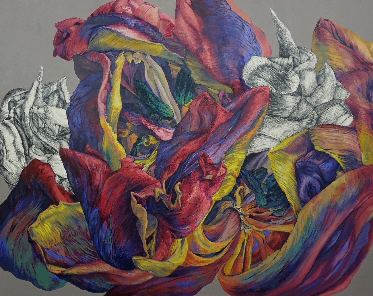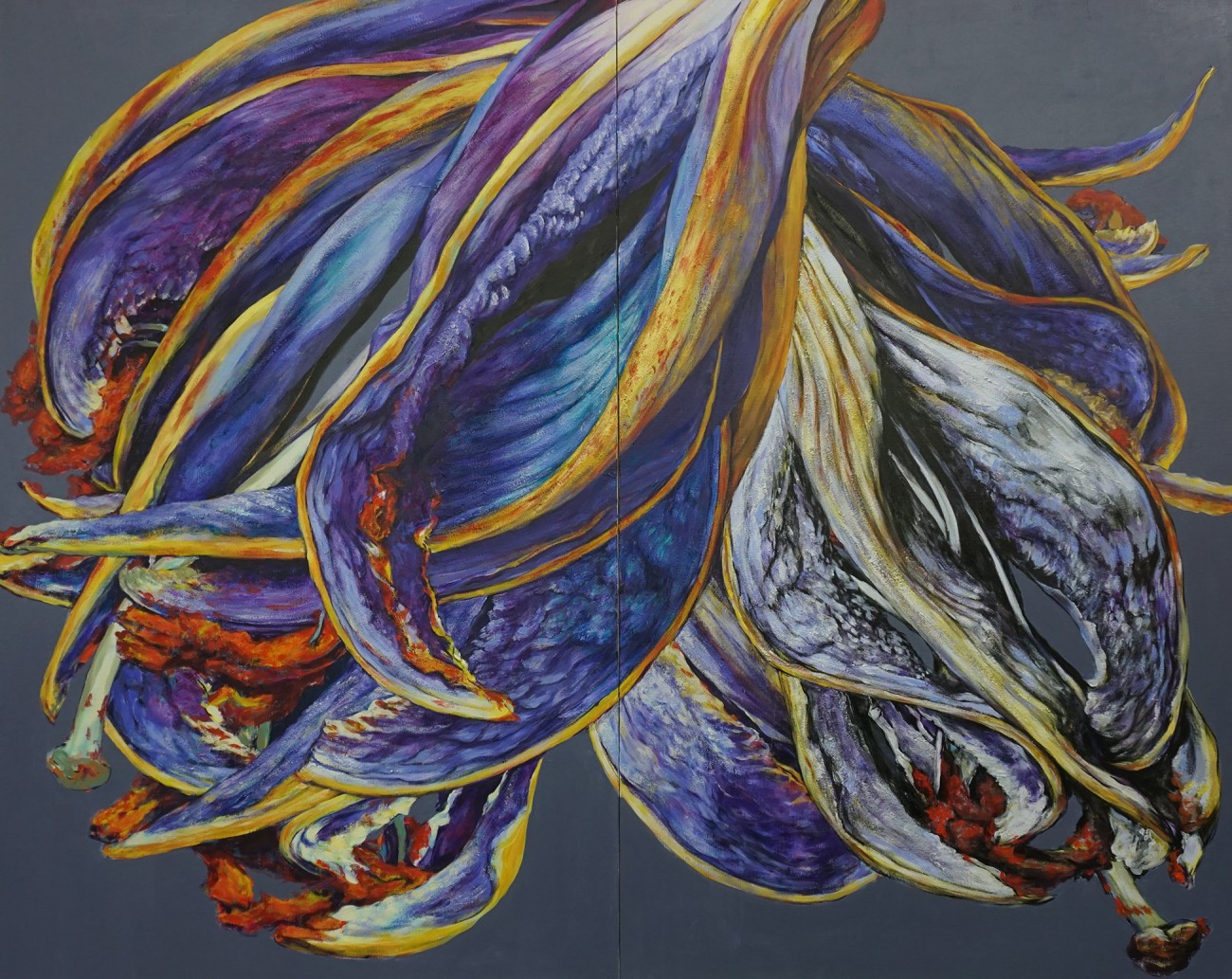 枯かけた花びらは、咲き始めた頃に比べると、それぞれの花びらが色々な方向に向かって、うねったり、反り返ったり、それぞれ違う形状になっていて、その花びらの個性が出て、とても興味深く惹かれるものがありました。