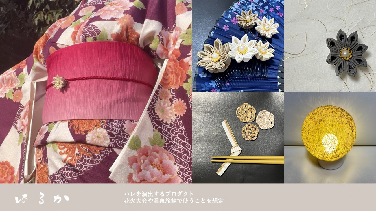 はるかでは、伊東を訪れた人にも楽しんでもらえるように、花火大会や温泉旅館で使えるものとして、髪飾り、帯飾り、箸置き、ランプシェードを作成