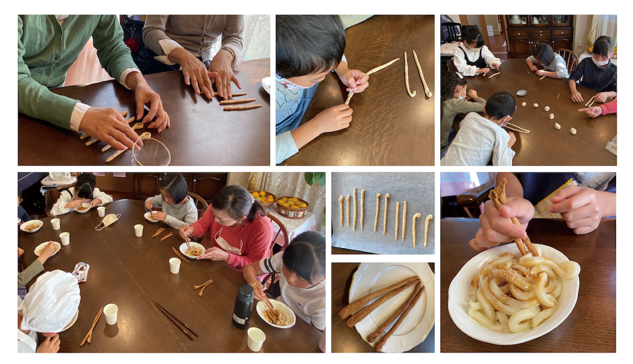 子供から大人まで、皆さんにご協力をいただき、実際にパンの耳で食べられる箸・ミミーチョを作ってもらうワークショップを開催しました。 出来立ての自作のミミーチョで伊勢うどんを試食。「おいしいね」、「箸を食べるっておもしろいね」と皆さんの笑顔が溢れました。