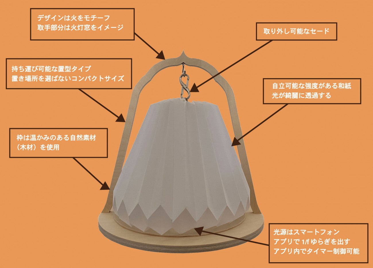 ネムリズムのデザインは火をモチーフとして、取手は火灯窓をイメージして作りました。