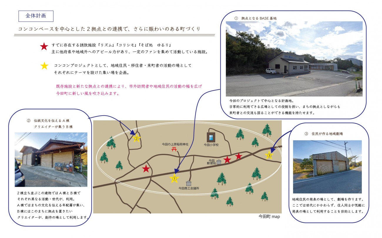 コンコンプロジェクトとは地域を繋ぐ拠点となる「コンコンベース」を中心とした住民交流の場作りです。