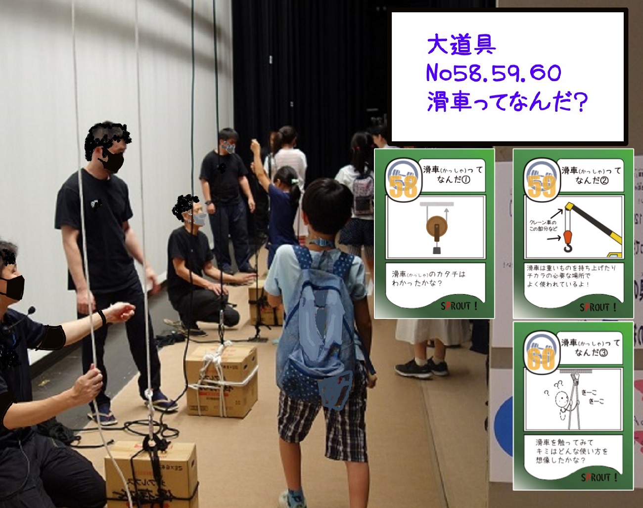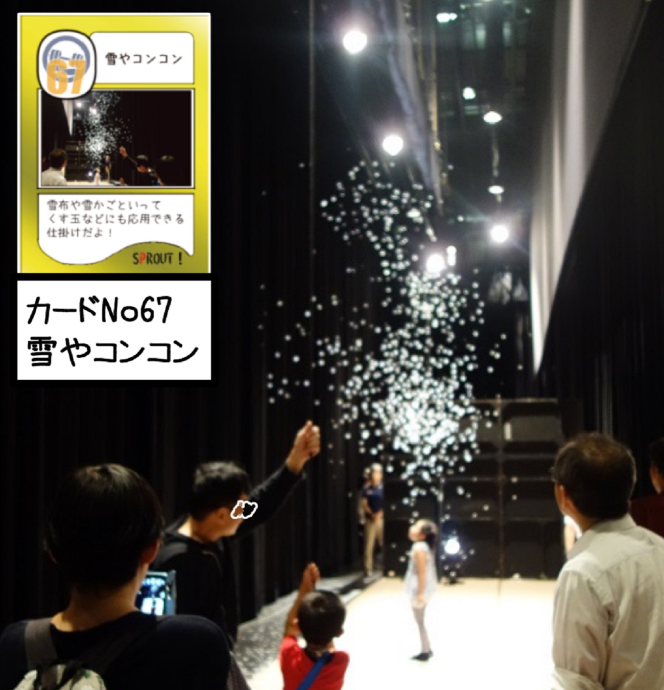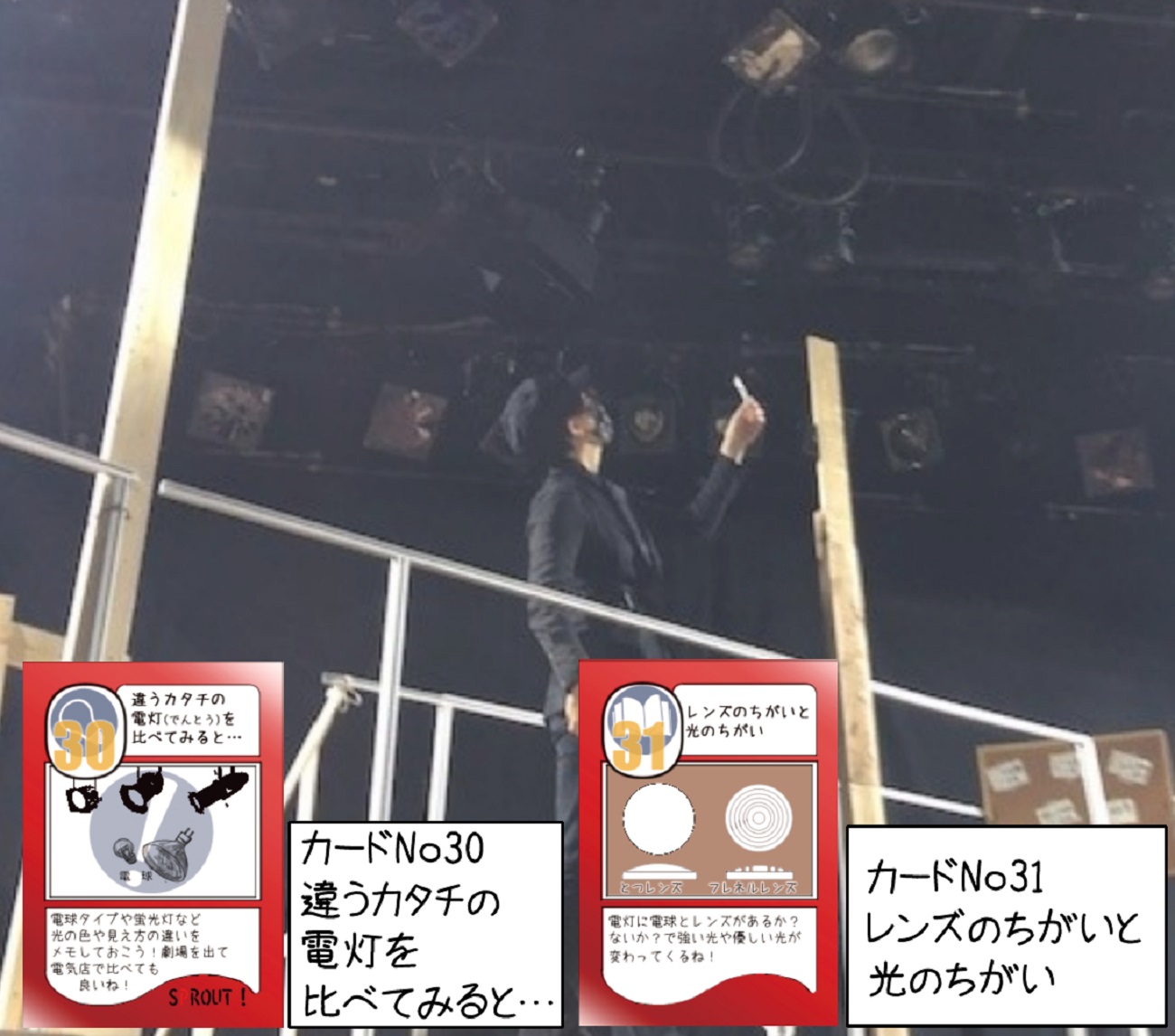劇場を使った舞台技術のプログラムとなり、舞台技術を体験しながらカードをコレクションしていきます。