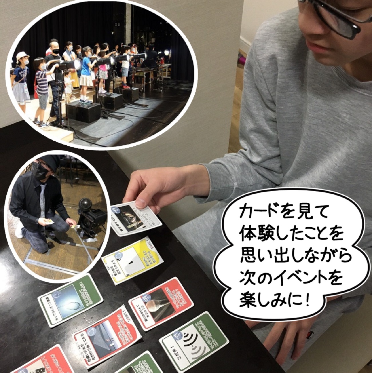 ① カード…体験終了証として使用することで、説明を受けるだけの劇場イベントと異なり、参加者の記憶に残り、次も参加したくなる動機付けをします。