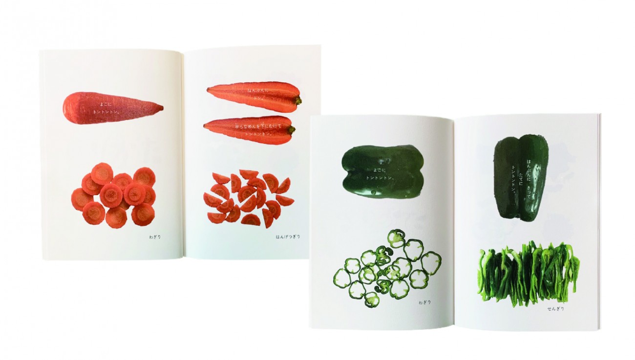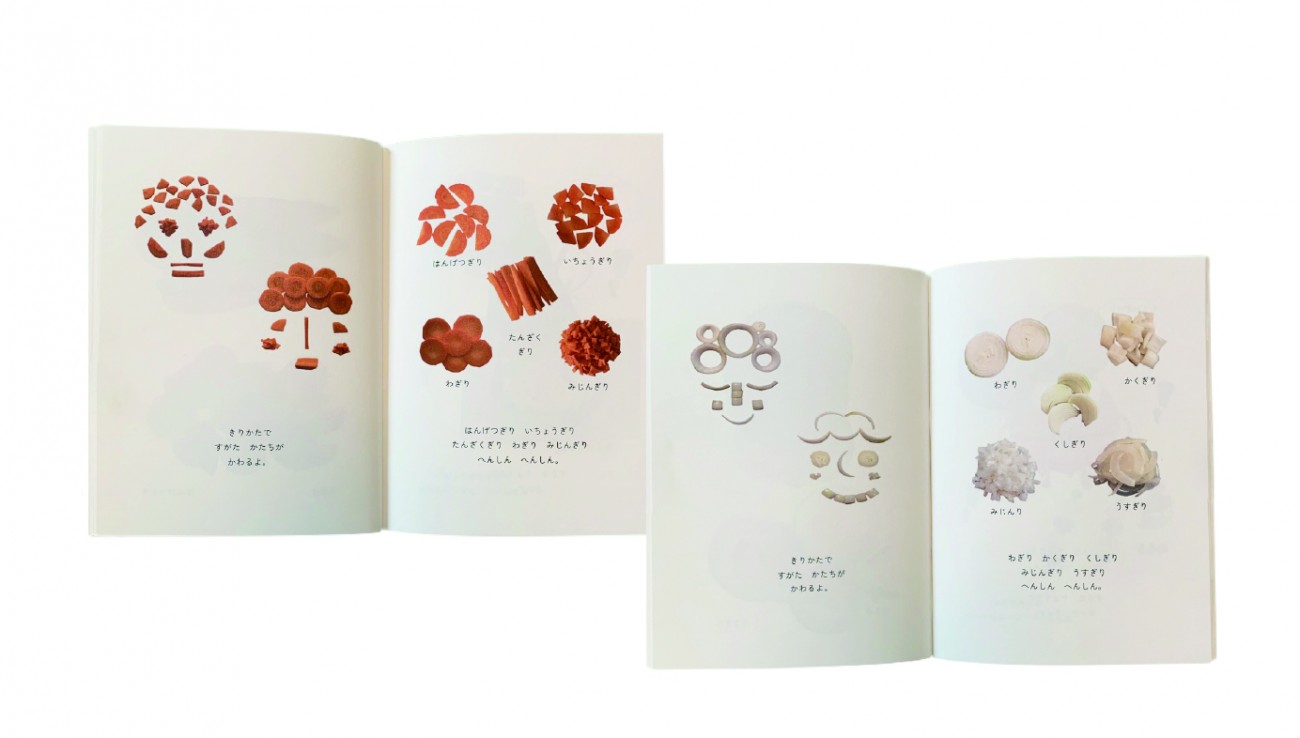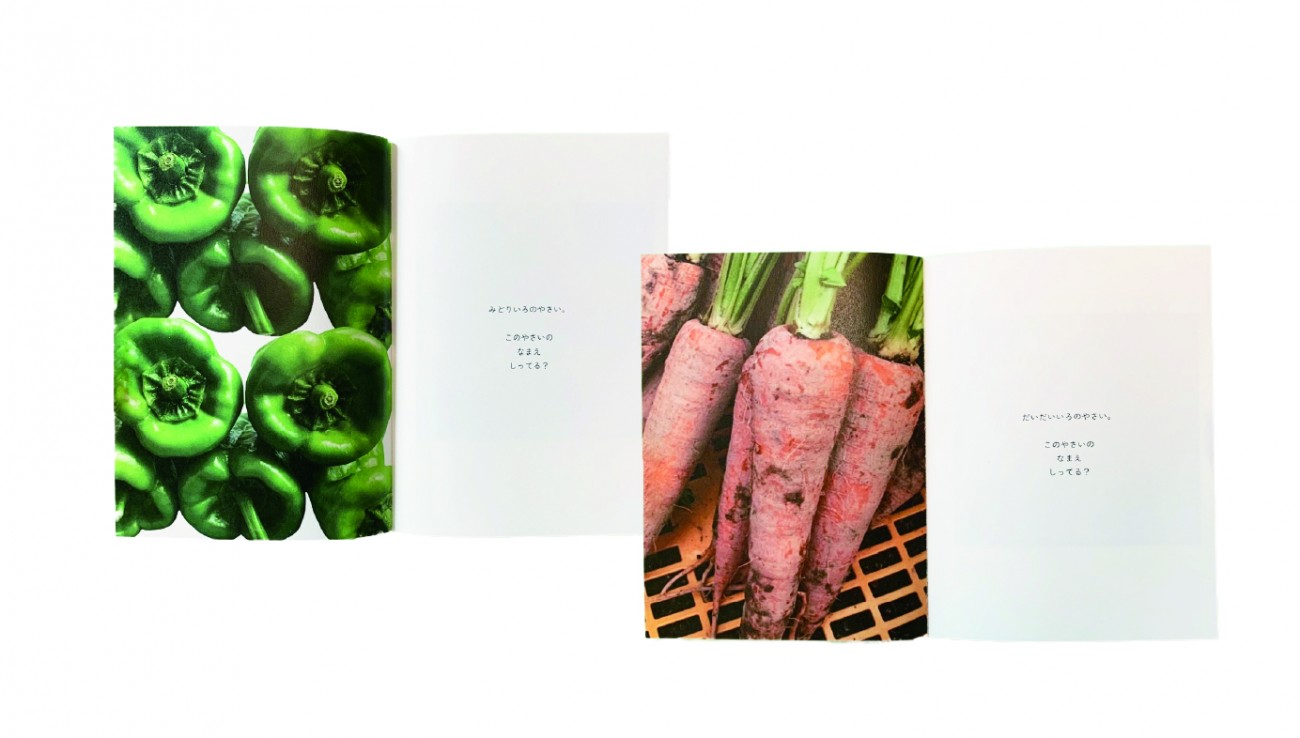 野菜について畑の姿や旬に触れたり、野菜の仲間や切り方、どんな料理に使われているかなどコミュニケーションをとりながら楽しめるよう、写真やイラストを中心としています。