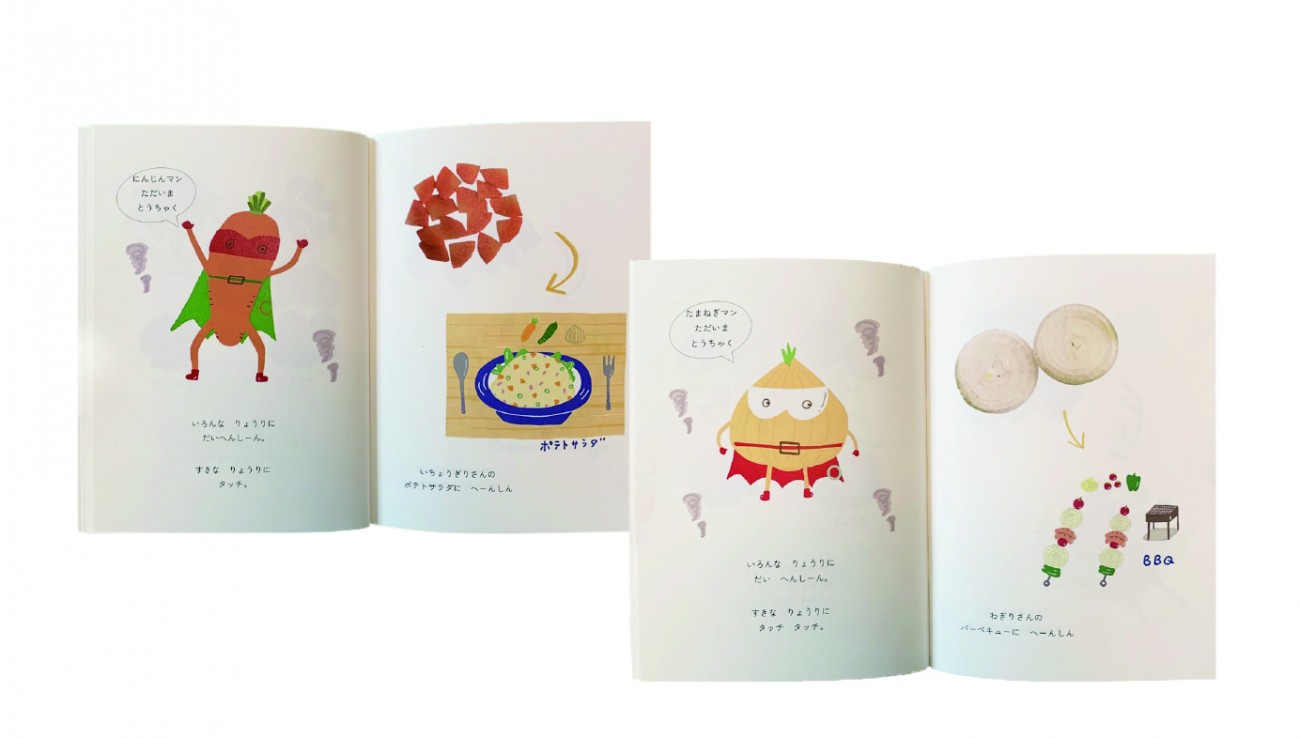 本の中でシリーズごとに登場する野菜のヒーローたち! ピーマンマン・にんじんマン・たまねぎマンが現れて色んな料理に変身させる