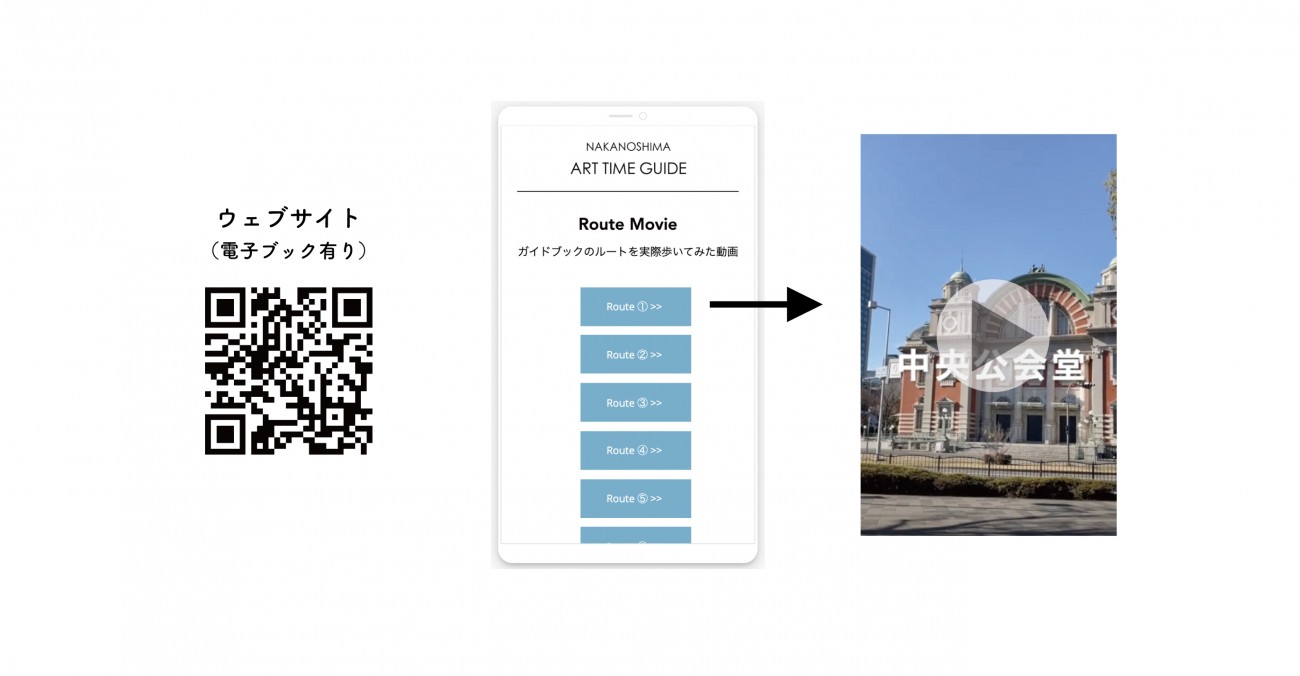 このガイドをより便利に利用していただくため、 実際のルートの案内動画、中之島エリアの詳細地図(既存地図アプリへのリンク)をまとめたウェブサイトを作成しています。 また、本ガイドブックを電子ブック化したコンテンツも閲覧でき、 タブレットなどのモバイル端末でも利用できるよう利便性を高め、気軽に取り組んでもらえる工夫を行っています。