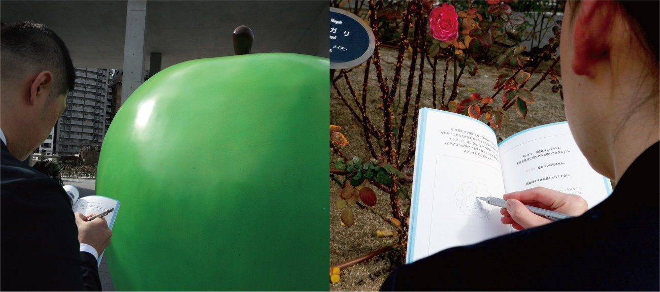 本でのワークを通して、「アート思考」、自分起点の考え方やを体感してもらいます。 アートやアート思考に関心が高い方はもちろん、興味はあるけれど何から取り組めばいいか分からない方にも 気軽に体験できるように、街中の対象物、屋外のアート作品や美術館の無料スポットを題材にしています。