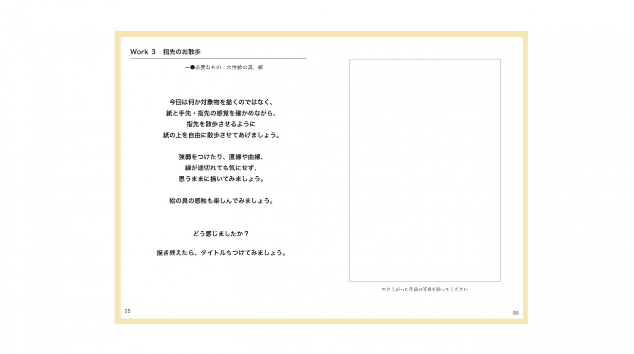 このガイドブックはあくまでも入門編であり、アート思考や関連した知識へのさらなる探求や、美術館への来訪のきっかけになることなど、体験の展開を目的としています。 そのため、さらに詳しい参考文献(オススメのブックリスト)や美術館の紹介、 自宅でも取り組める表現ワークなど、知的好奇心の枝葉を伸ばしていただく情報も記載しています。