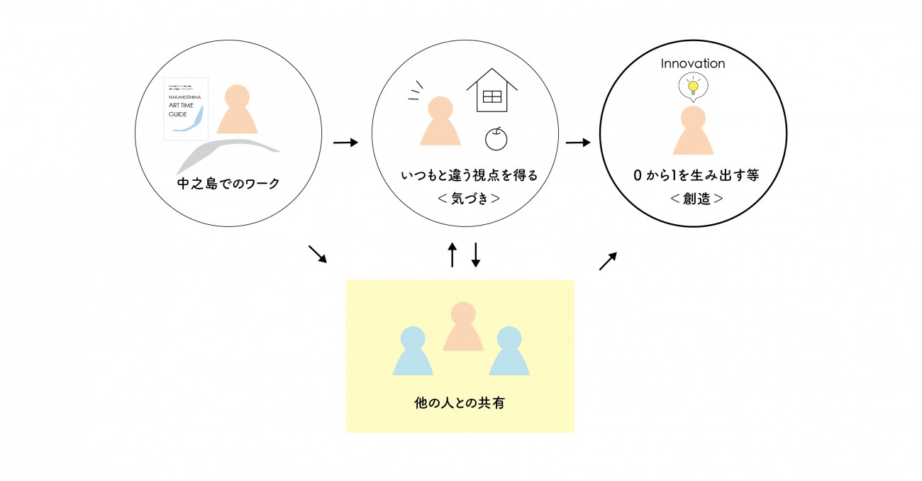 学習の中で生じた「アートに対して問われる存在価値や社会的役割は何だろう?」という問題意識と、 キャリア相談の仕事を通して寄せられる「先行きの見えない時代の中で、どう自身や組織を適応させていけばいいか?」 「自身の土台(OSのようなもの)をアップデートするにはどうすればいいか?」といった多くの悩みがきっかけとなり、 両者を活かして双方の課題の改善の糸口になるものはないかと考えたのが、テーマのきっかけでした。