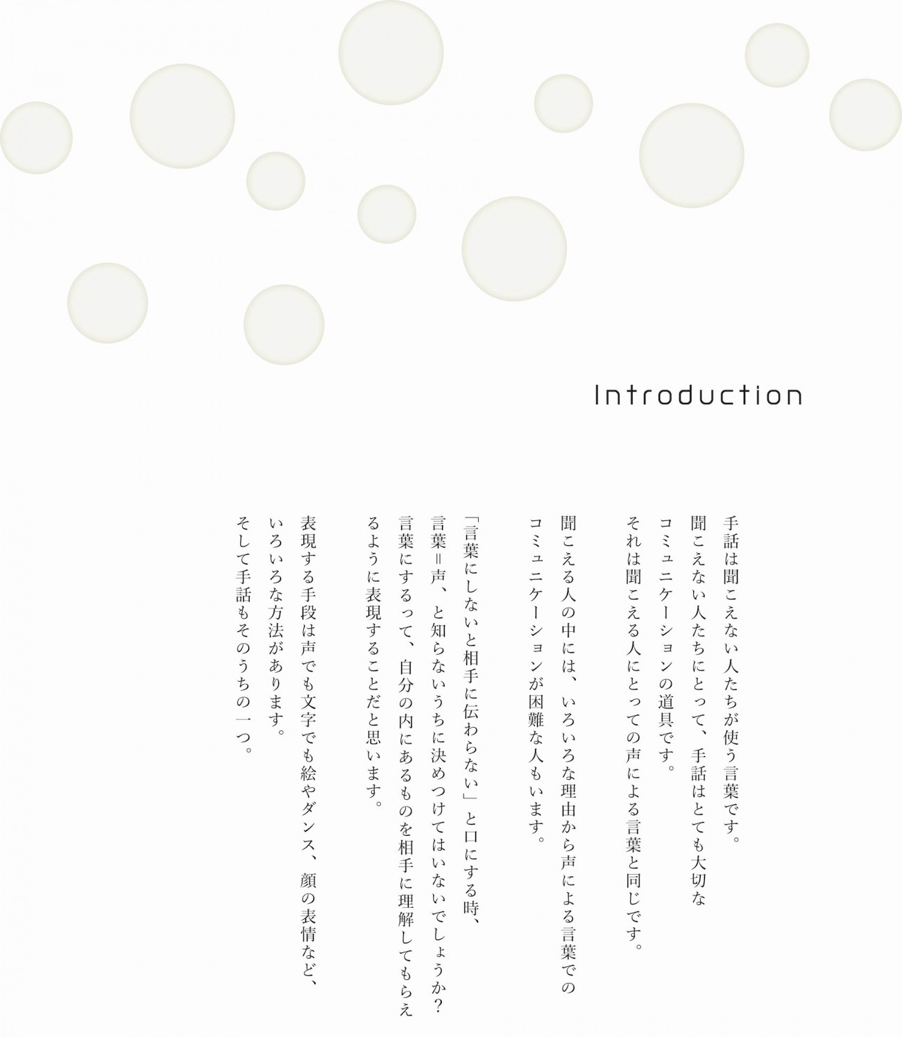 「手話をみんなで使える共有のコミュニケーションツールにしよう!」をコンセプトに、聞こえる人たちに手話に楽しく親しんでもらうことを目的に、ブックレットと動画を制作しました。