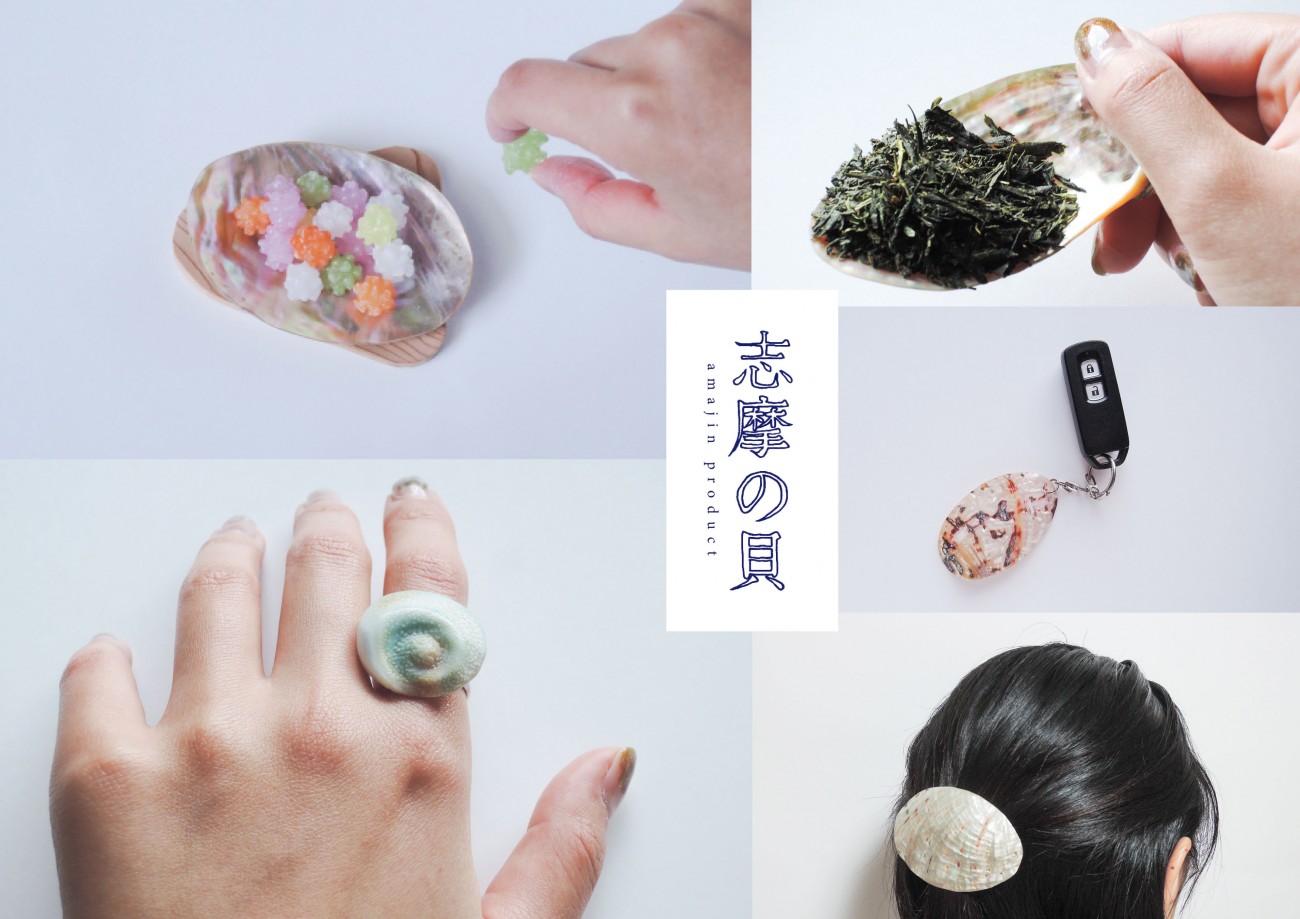 アップサイクルプロダクト「志摩の貝」 海女文化を日常へと浸透させるためのアップサイクルプロダクト「志摩の貝」を制作しました。 海女文化を身近に感じてもらうために豆皿、茶匙、キーホルダー、リング、バレッタを制作しました。 特に、アワビの貝殻は衝撃に強く、簡単に壊れることはありません。長く使ってもらうのにピッタリの素材です。本来であれば、捨てられていたものを長く使えるプロダクトにすることで資源を無駄にしない意識が芽生えるのではないでしょうか?