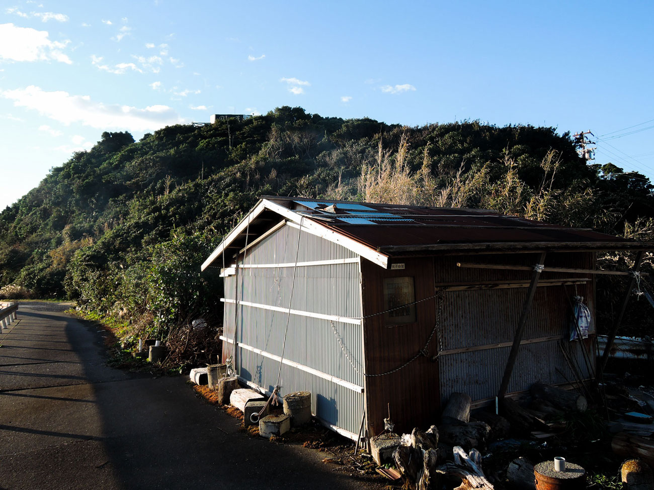 「海女と空間」 海女は体を温めるために「かまど」と呼ばれる小屋で火を焚いて体を温めます。特に冬場は海に入る前と後は必ずここで仲間たちと体を温めます。海女は個人で漁を行いますが、かまどは行事の連絡などを取り合うために構成された1つのグループのようなものです。基本的に所属しているかまどで体を温めます。町内にいくつかのかまどが点在していて、現在では海女の数も減ったのでかまどに集まる人数も減りました。 中はサウナのように熱く、煙の量が多いので目が少し痛くなります。このかまどはトタンをつぎはいで作られていますが、立派な倉庫のようなものもあればコンクリートでできたものもあります。