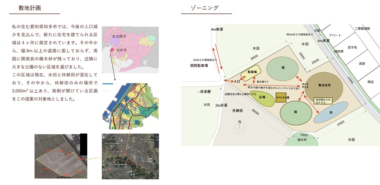 私の住む愛知県知多市で敷地を探し、この場所の立地条件からゾーニングを行いました。