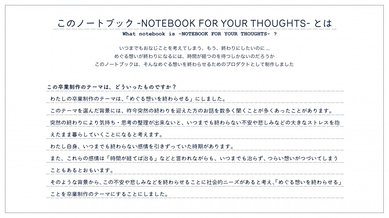 NOTEBOOK FOR YOUR THOUGHTS ーめぐる想いを終わらせるー