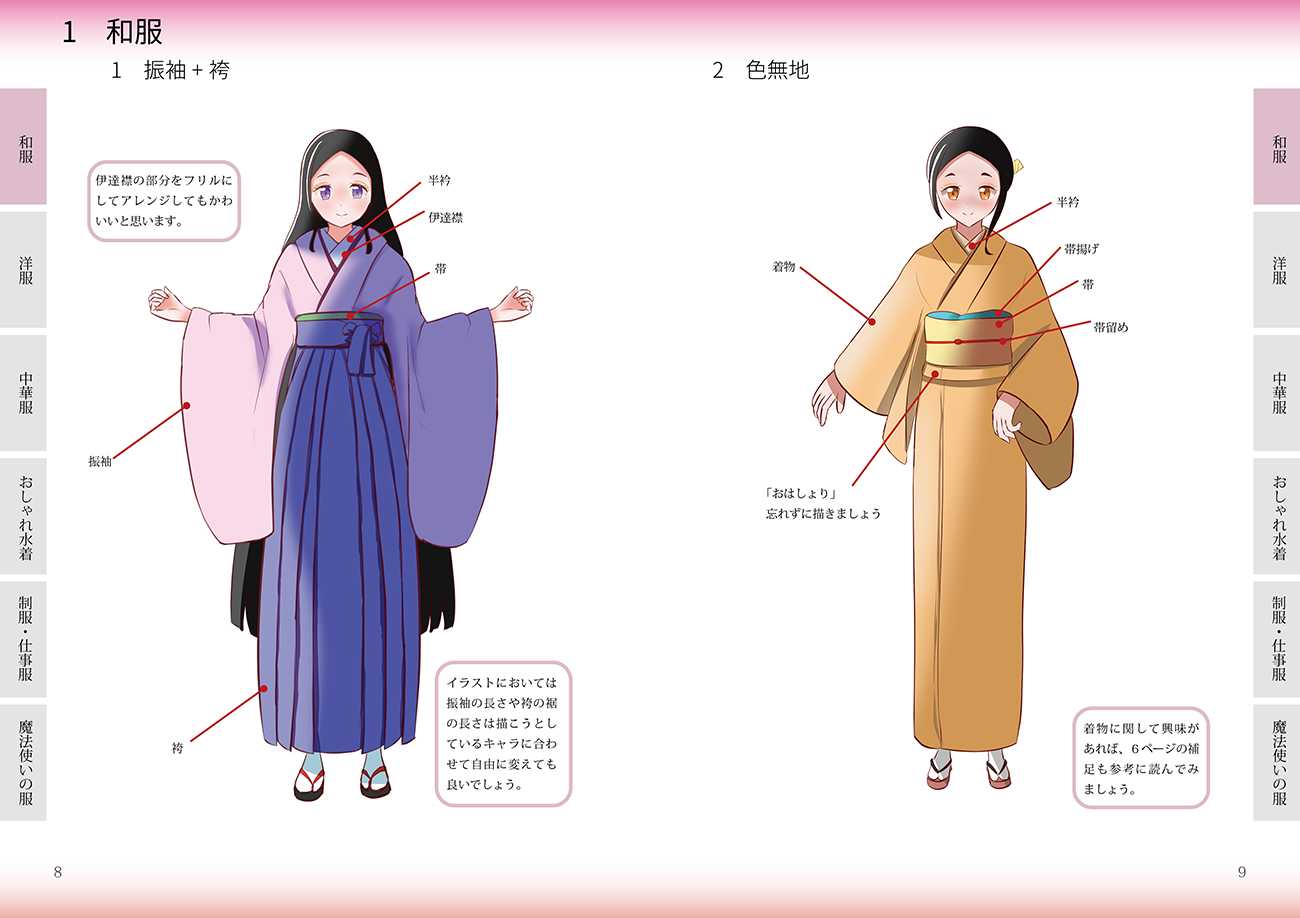 衣装イラストページ1(例:和服)