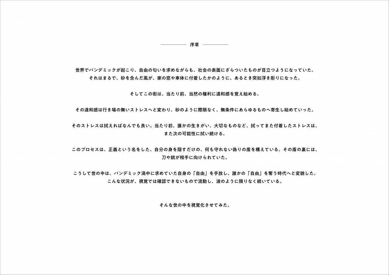 この制作は、「ウソではありません、こうなってしまいます。」をコンセプトに行いました。この問題を認知し、より自由で寛容な日本を取り戻したいのです。