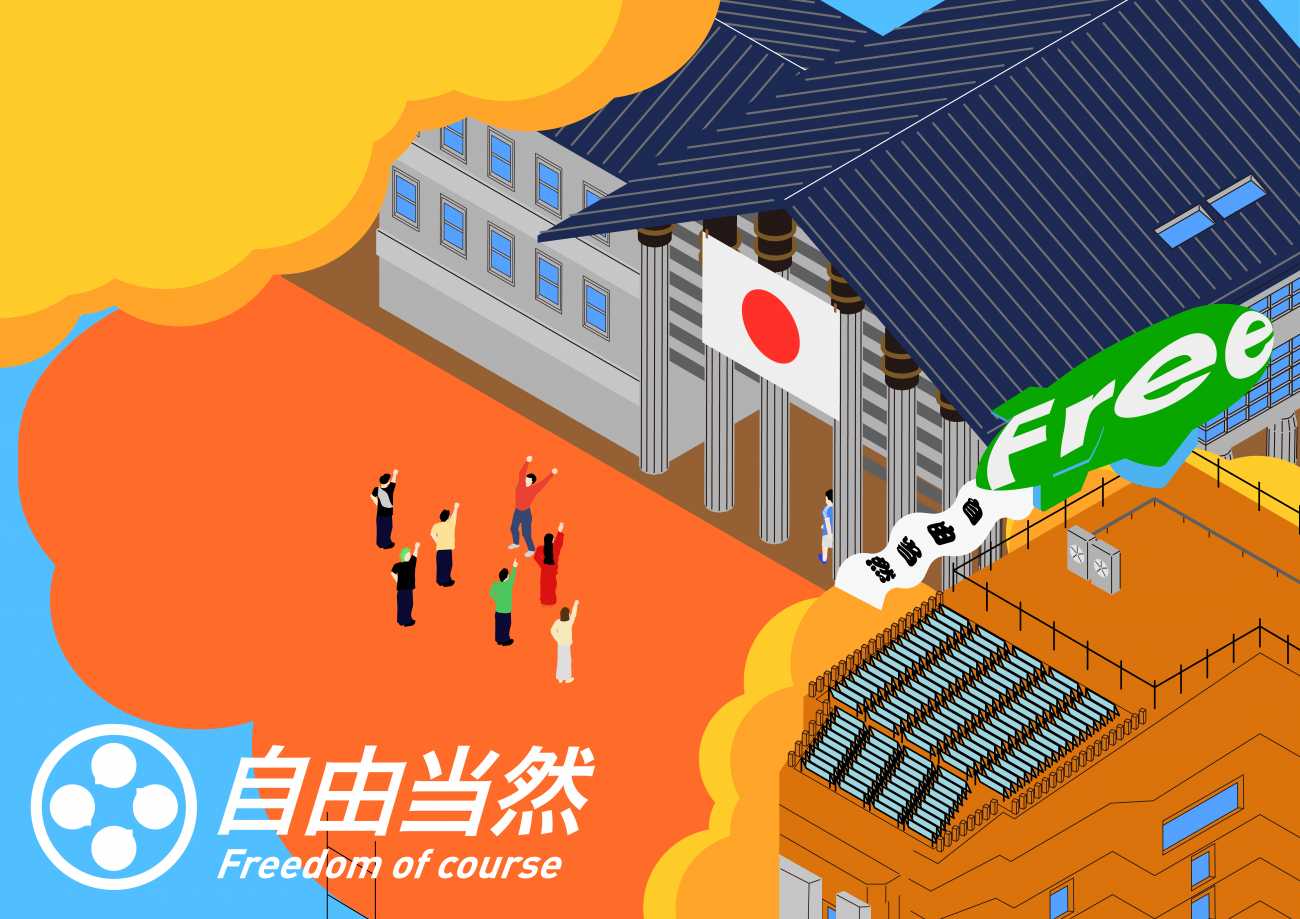 「自由当然」まだ自由に溢れている日本の表現を行いました。学校と学生が希望に満ち溢れて、賑やかな様子ですね。今後何が起こるかは、知る由もありません。