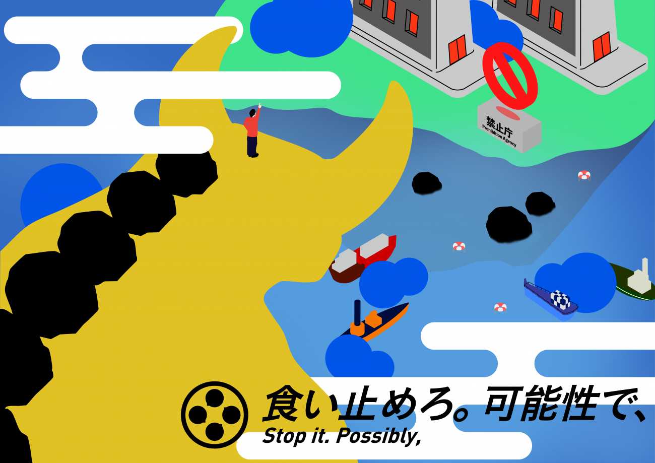 「禁止」が溢れる日本について、物語性のある連作作品として9枚のポスターを制作しました。
