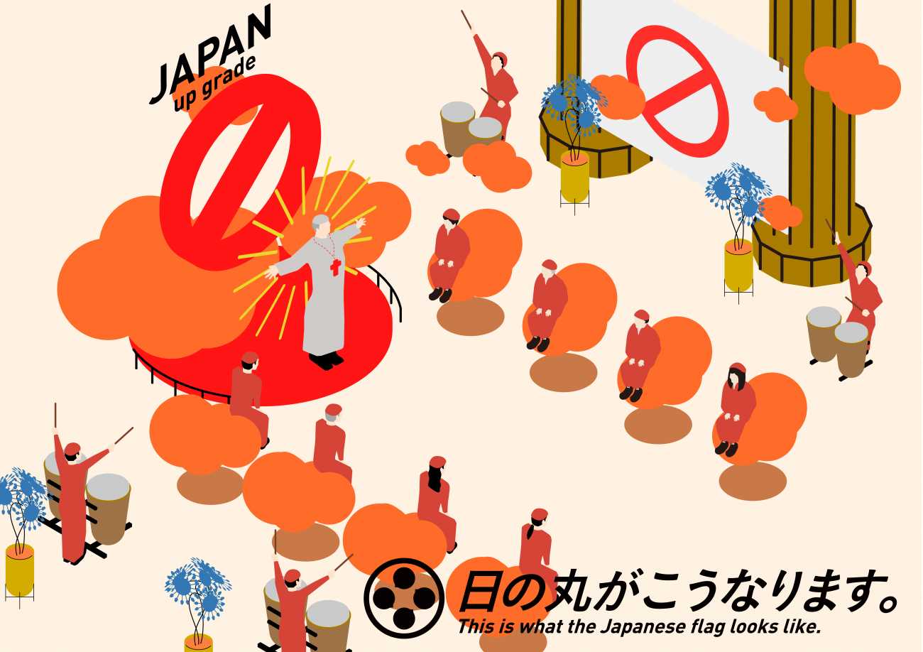 「日の丸がこうなります。」案の定です。日本の象徴である日の丸が禁止マークに変更されました。これが「禁止」によって変わり果てる日本の未来です。