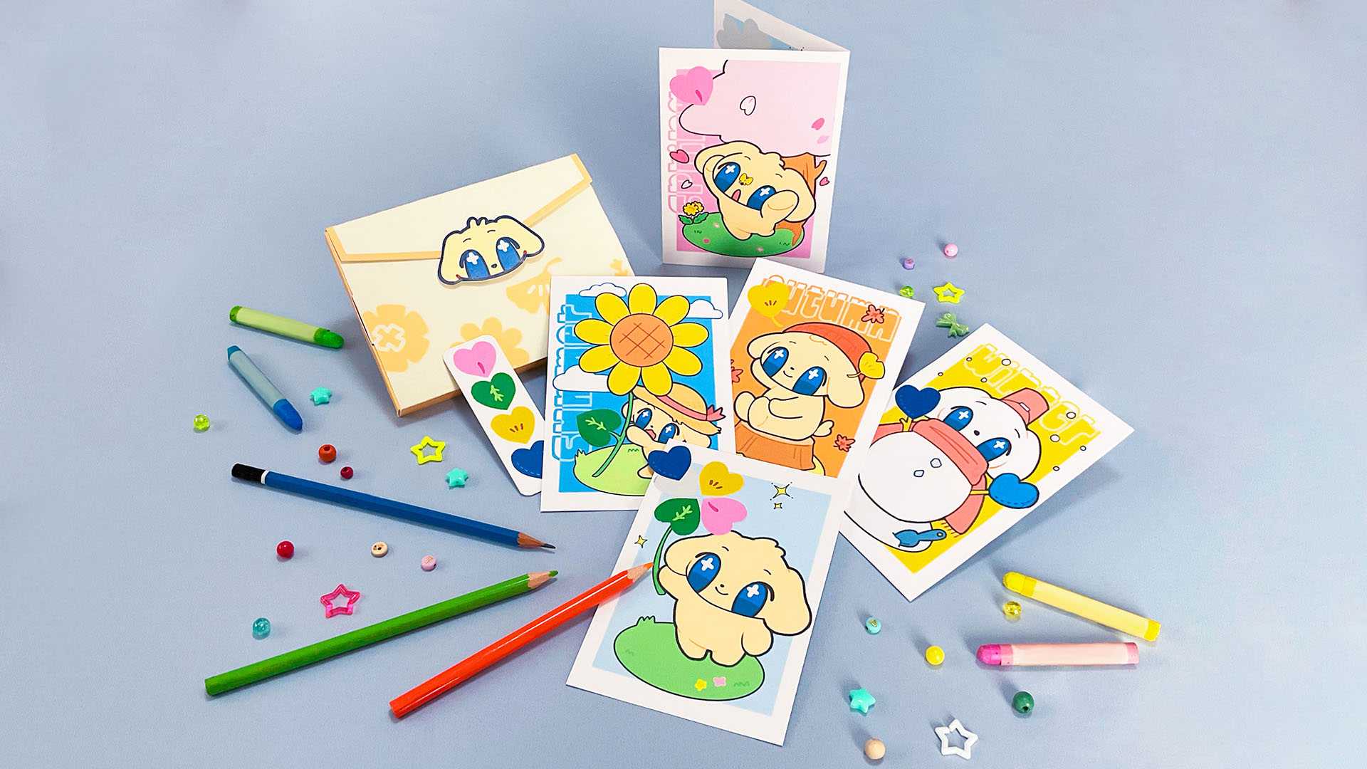四季に合わせた4種のイラストがデザインされたポストカードのセットです。