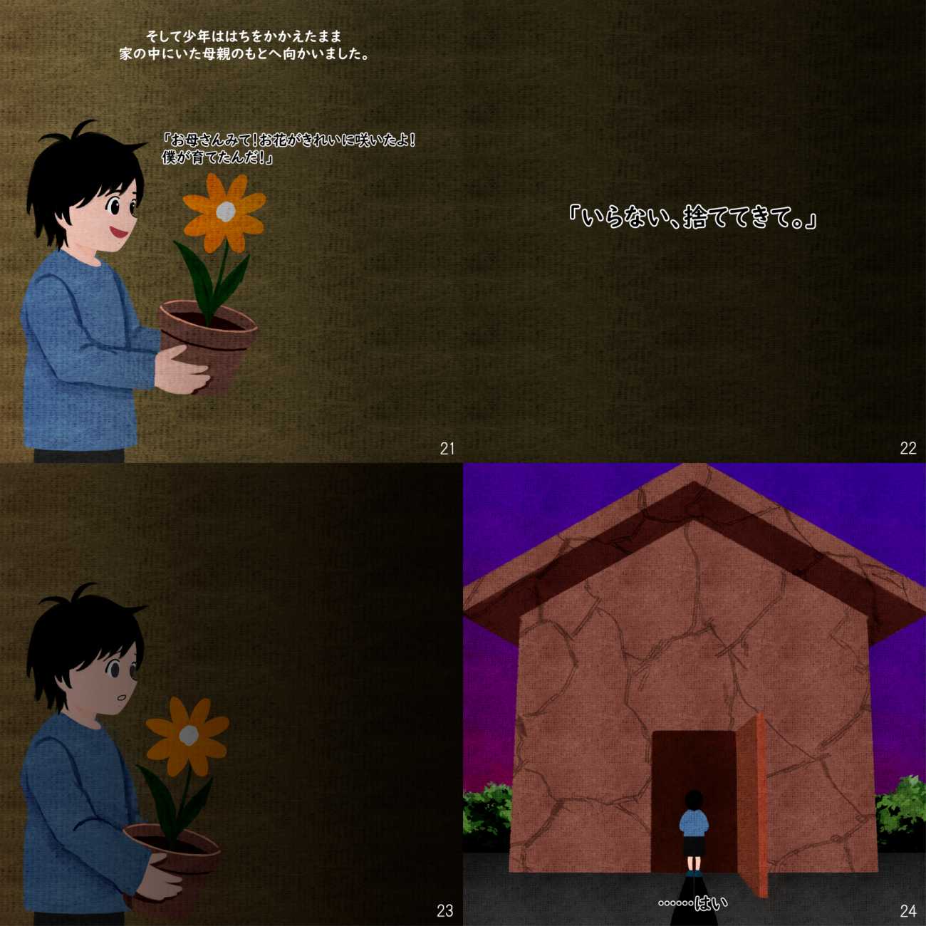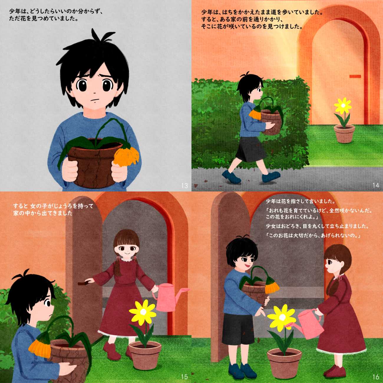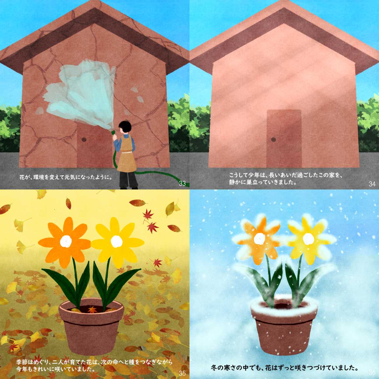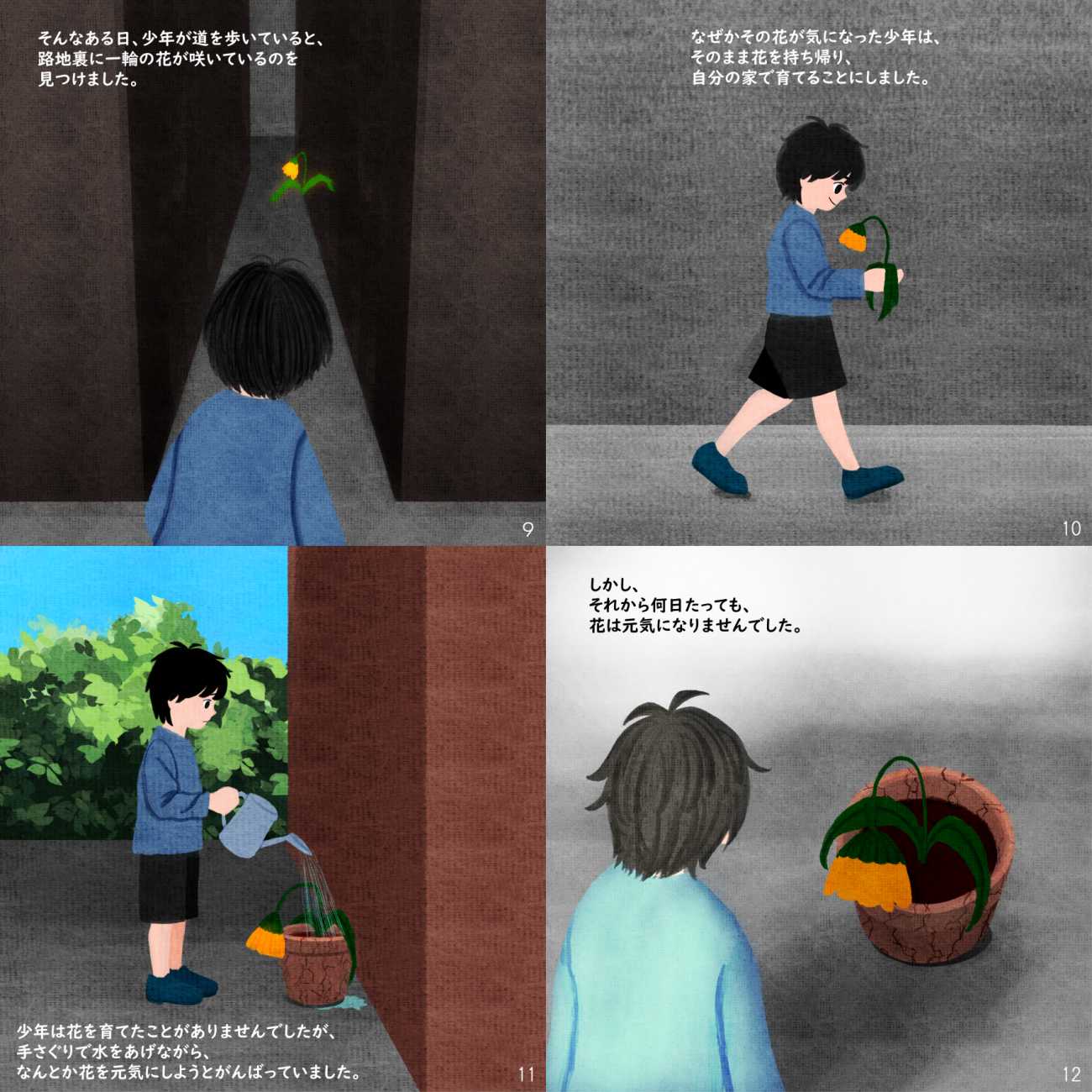 少年は、「あの子みたいに花を咲かせてみたい」という純粋な気持ちで花を育て始めるのですが、そんな日々の中で、次第に自分が置かれている環境の息苦しさや、これまで押し殺してきた不満、悲しみと向き合うようになっていきます。