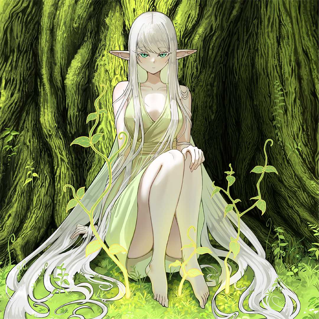 妖精の画像。キャラクターが居ることでよりこの作品に興味を持つ人が増えると考え妖精を配置した。白基調のカラーリングで視線が向きつつも大樹以上に目立ちすぎないように制作している。