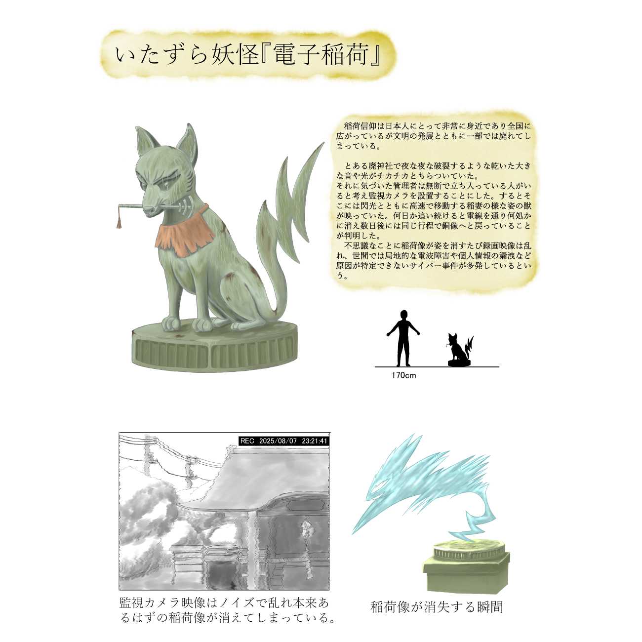 それぞれの妖怪に目を通していただいて現代日本の未知に触れ皆さんに想像して欲しいです。またご覧になった人それぞれの恐怖や未知に形を与えるきっかけになればと思います。
