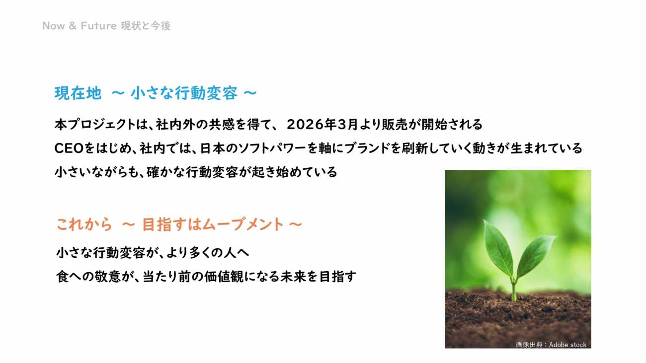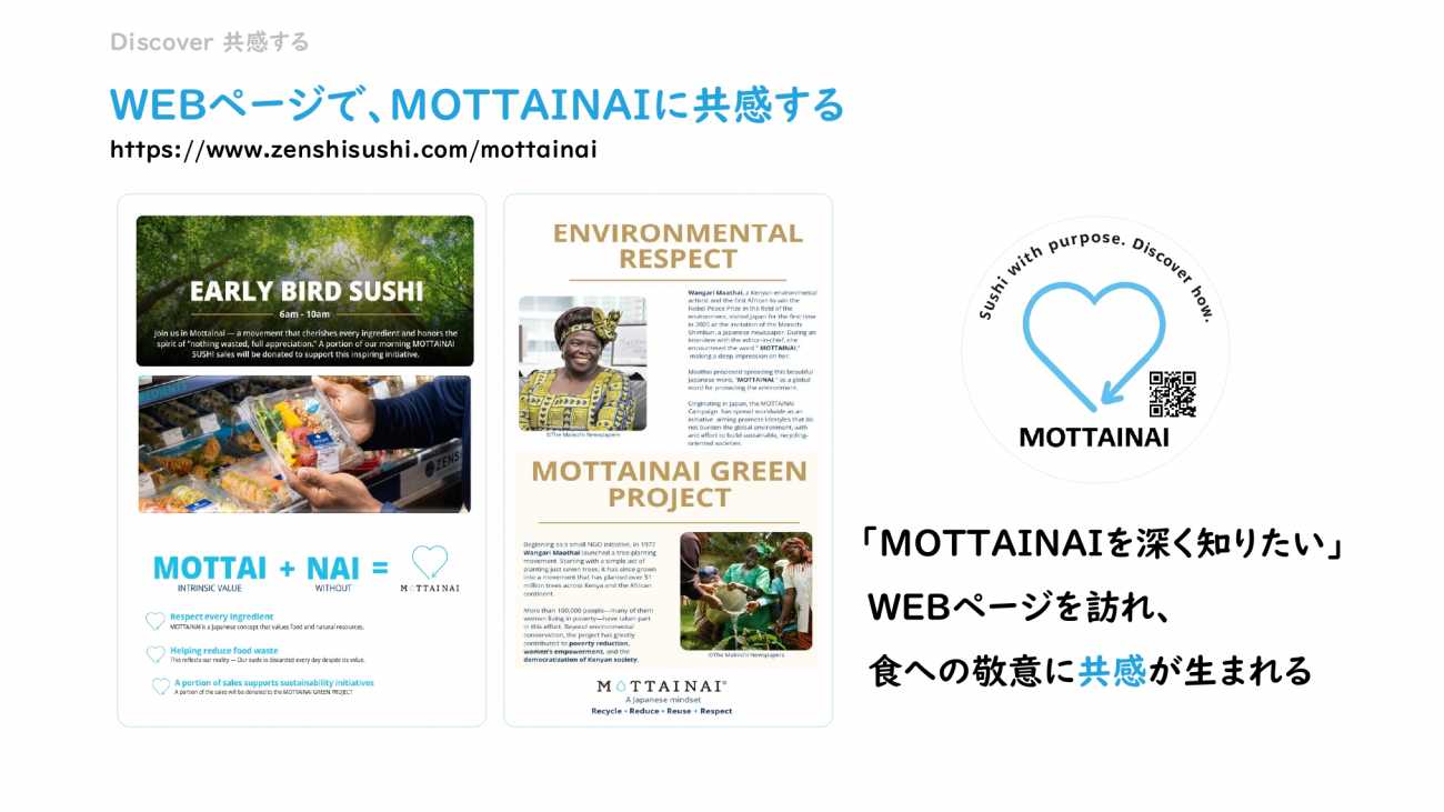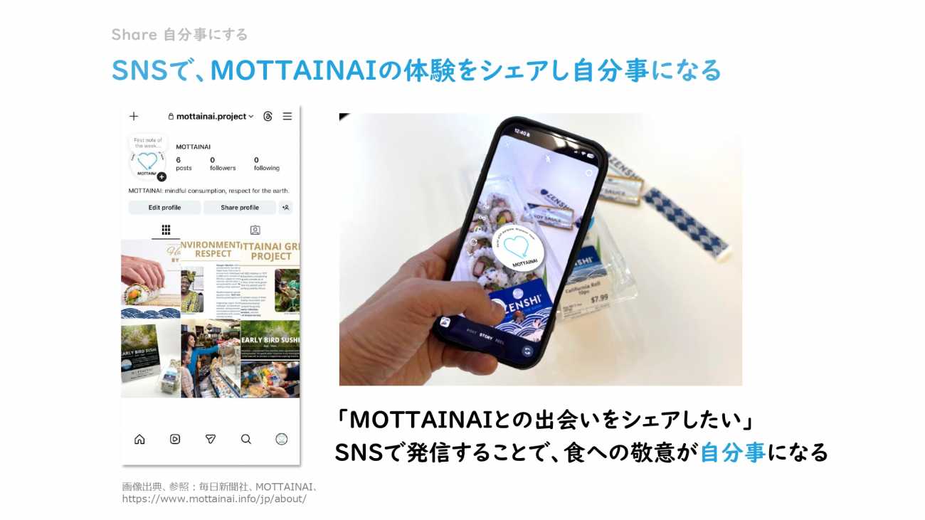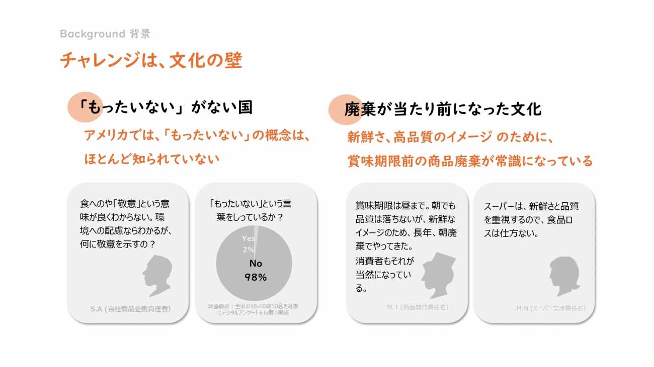 MOTTAINAIプロジェクトは、これらの商品に、「もったいない」という日本のソフトパワーの価値を与えることで、食を敬う気持ちを持ってもらい、食品ロスの削減を目指すプロジェクトです。