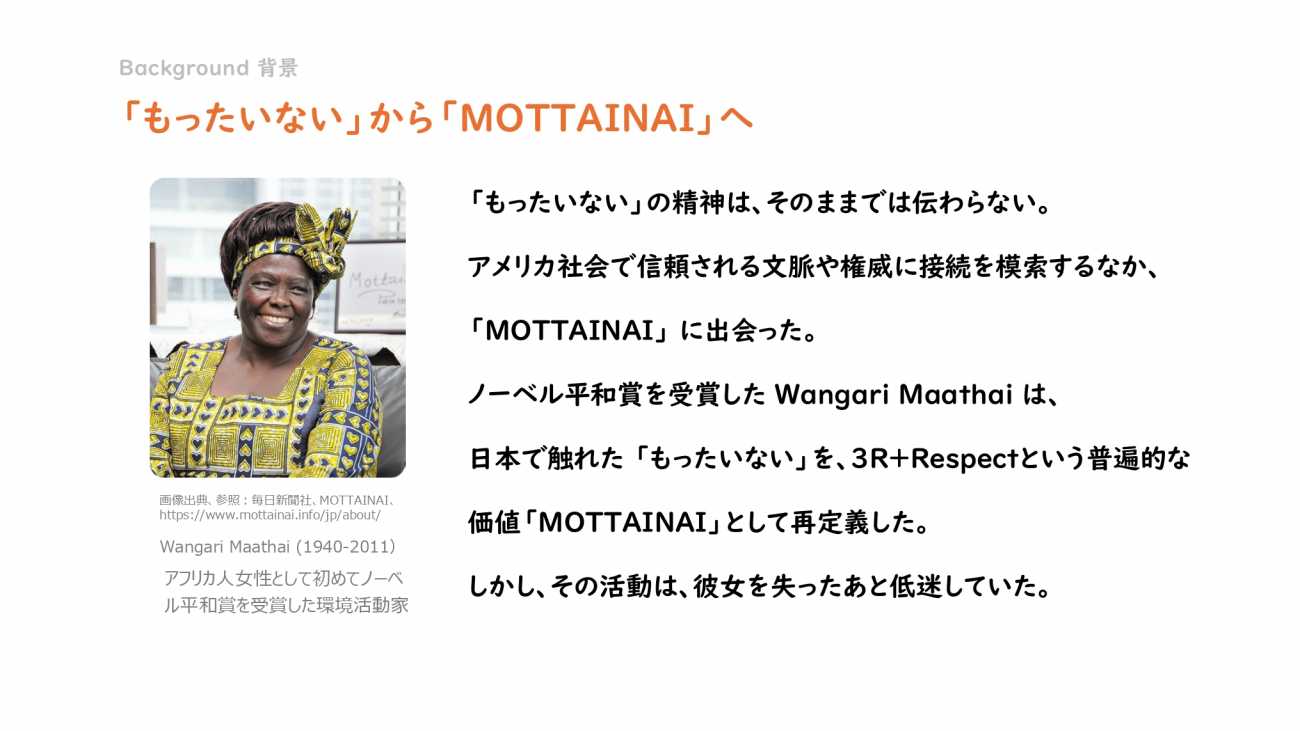 このMOTTAINAIプロジェクトは、私自身が現場で感じた想いがきっかけです。