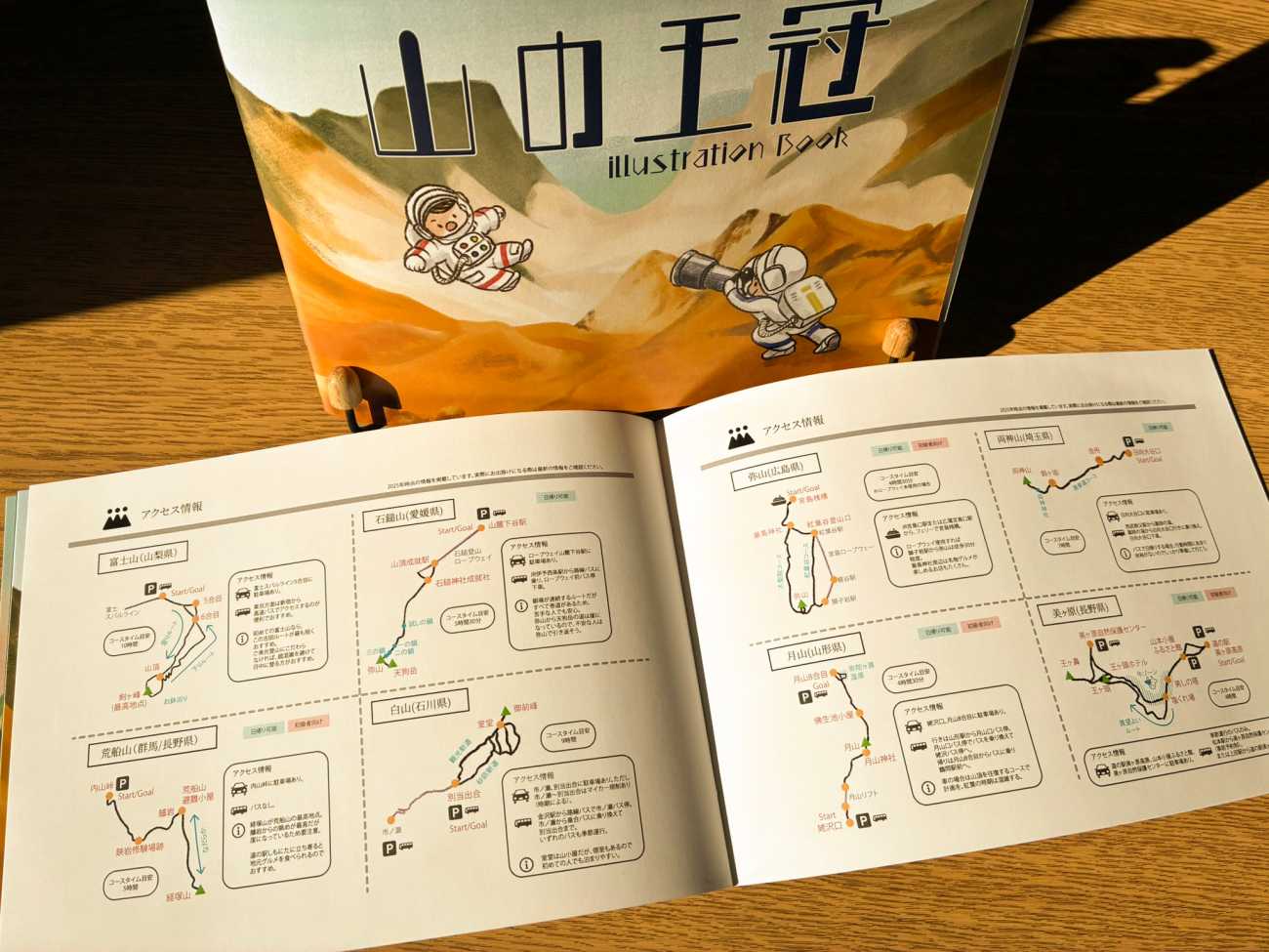 この本は、その山で私が面白いと思ったことや山に関するエピソードを踏まえて、こうだったら面白いなと思う+αを加えてイラストで表現しました。